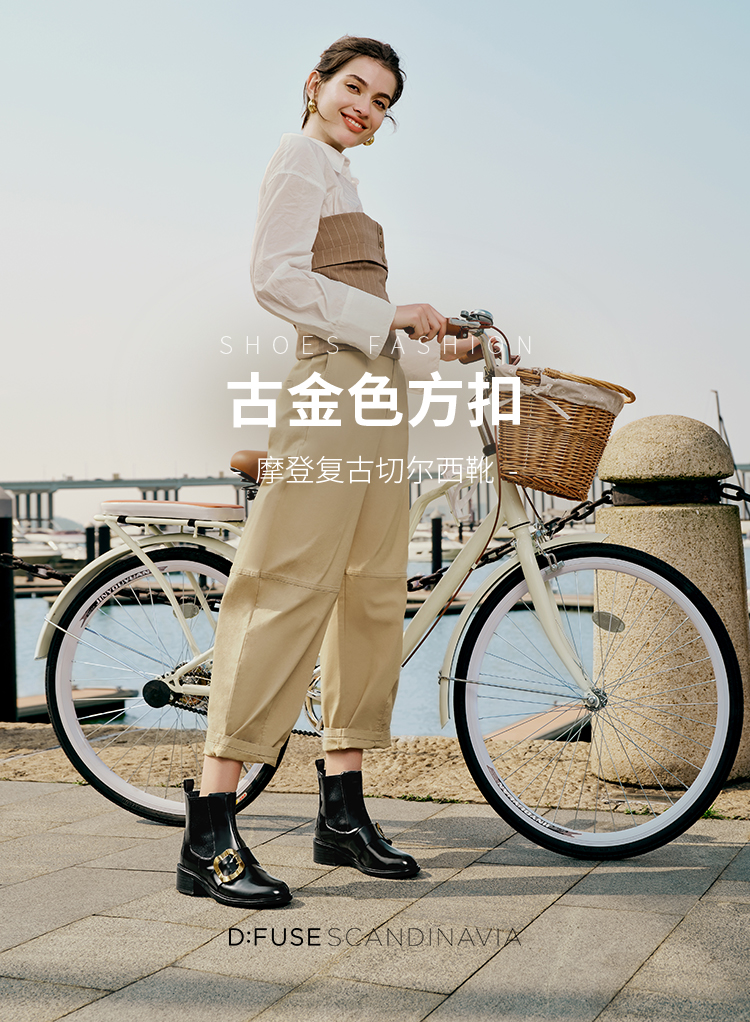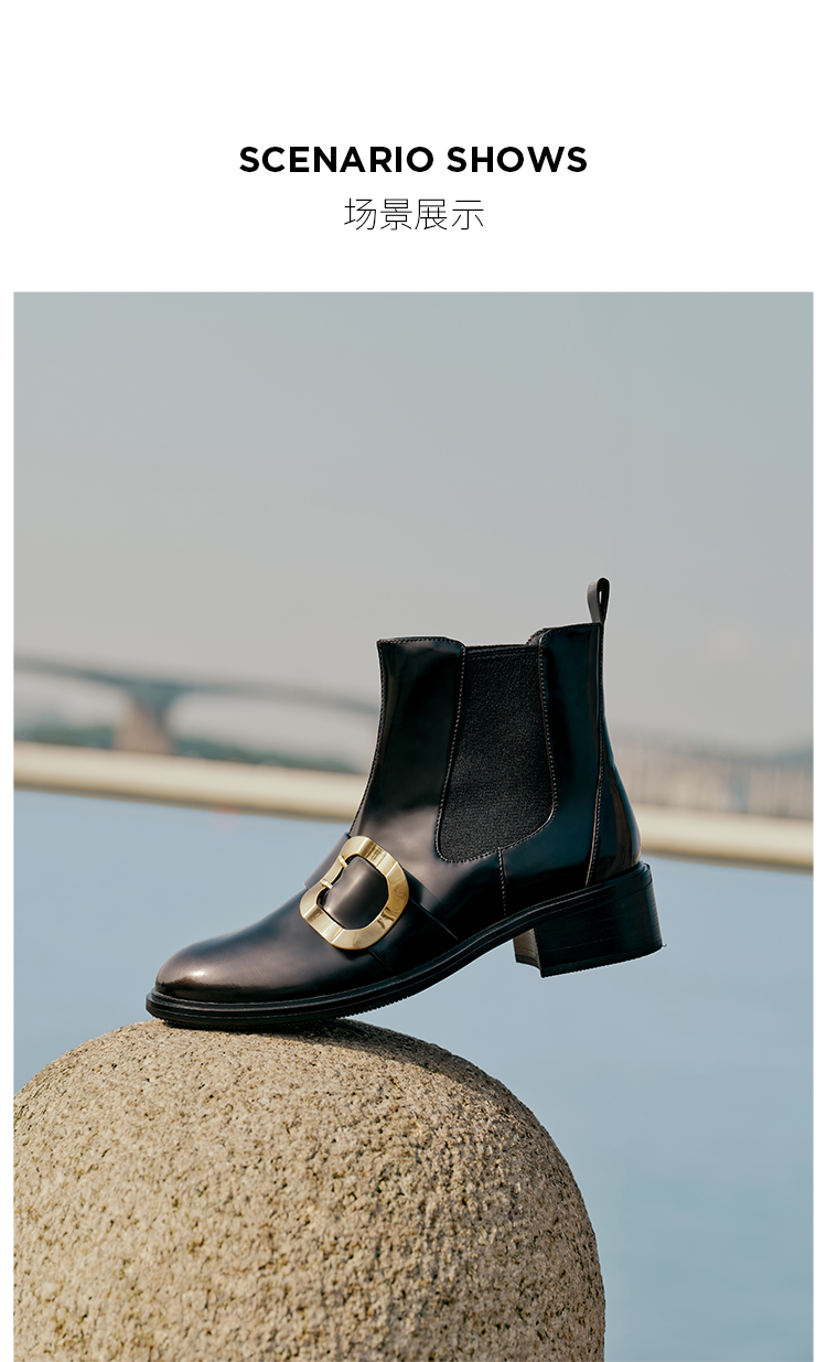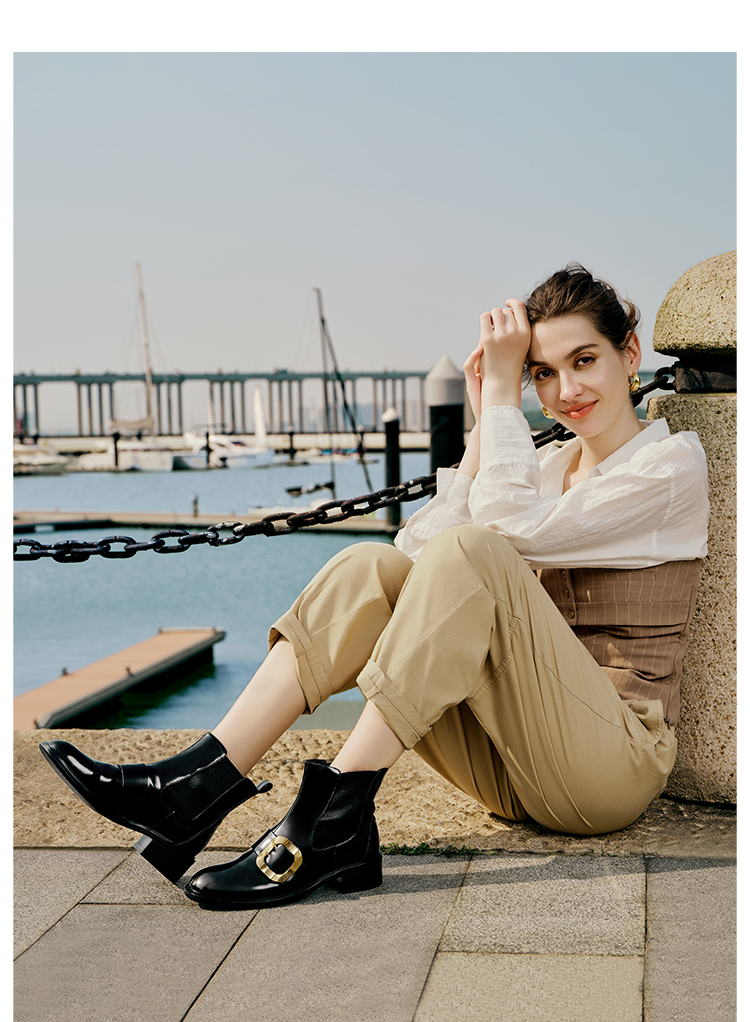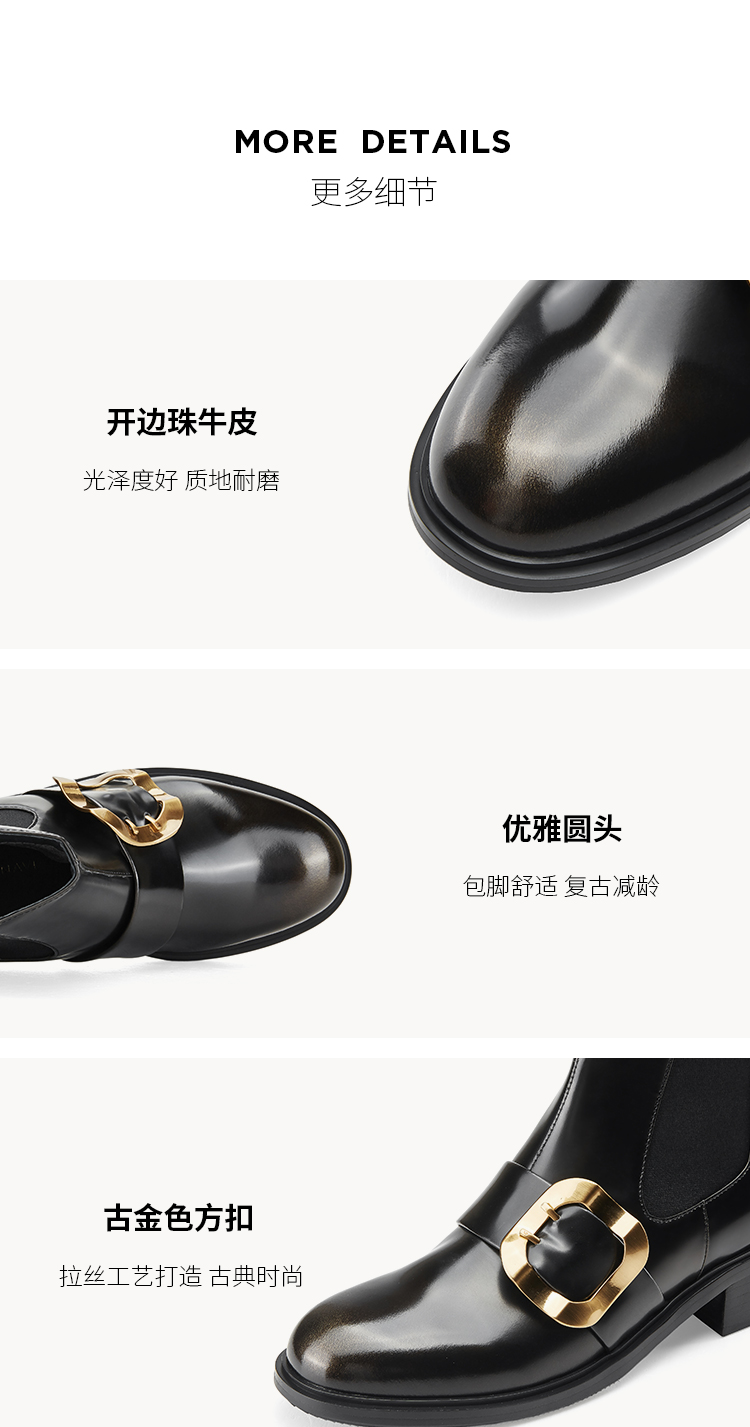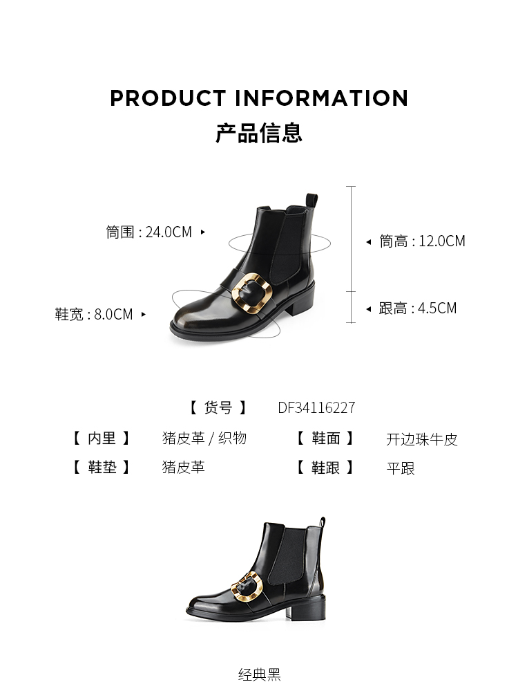 【复古藏家】D:FUSE迪芙斯冬款女靴切尔西靴牛皮圆头复古方扣短靴女DF34116227