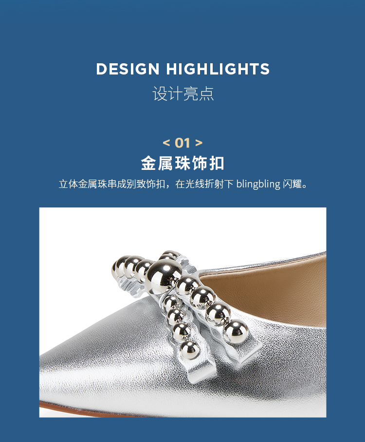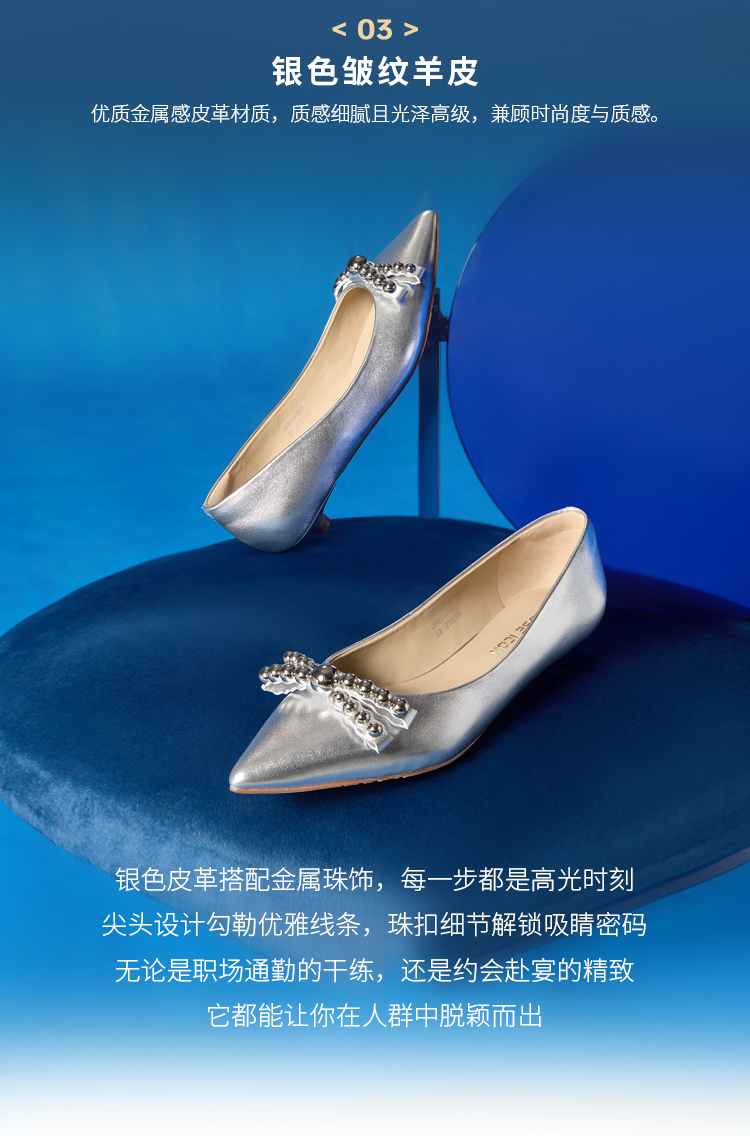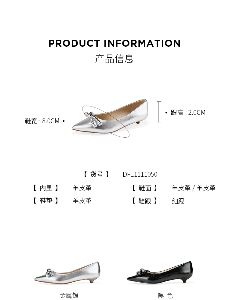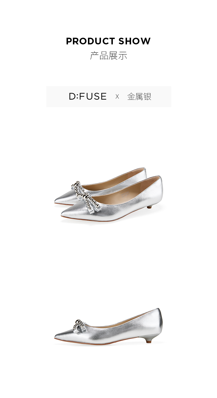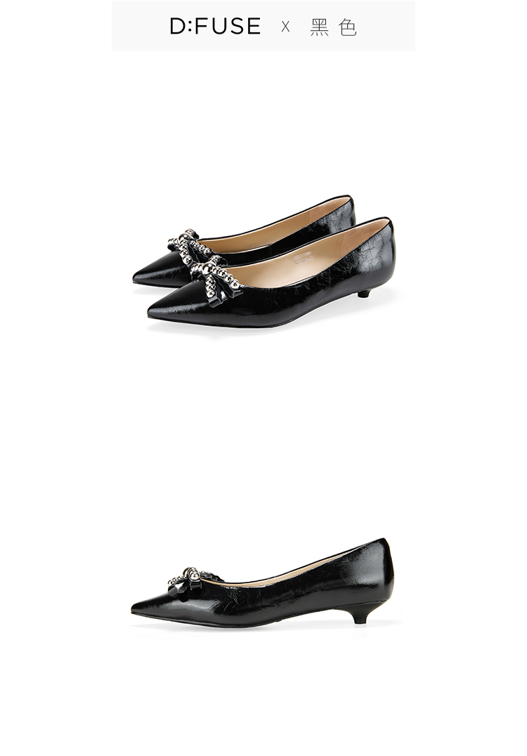 Dfuse迪芙斯2026春季新款尖头双条钉珠蝴蝶结皱纹羊皮小猫跟单鞋女鞋DFE1111050