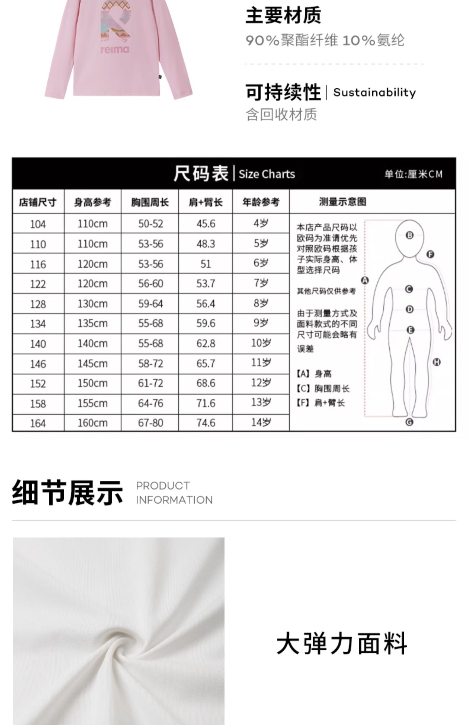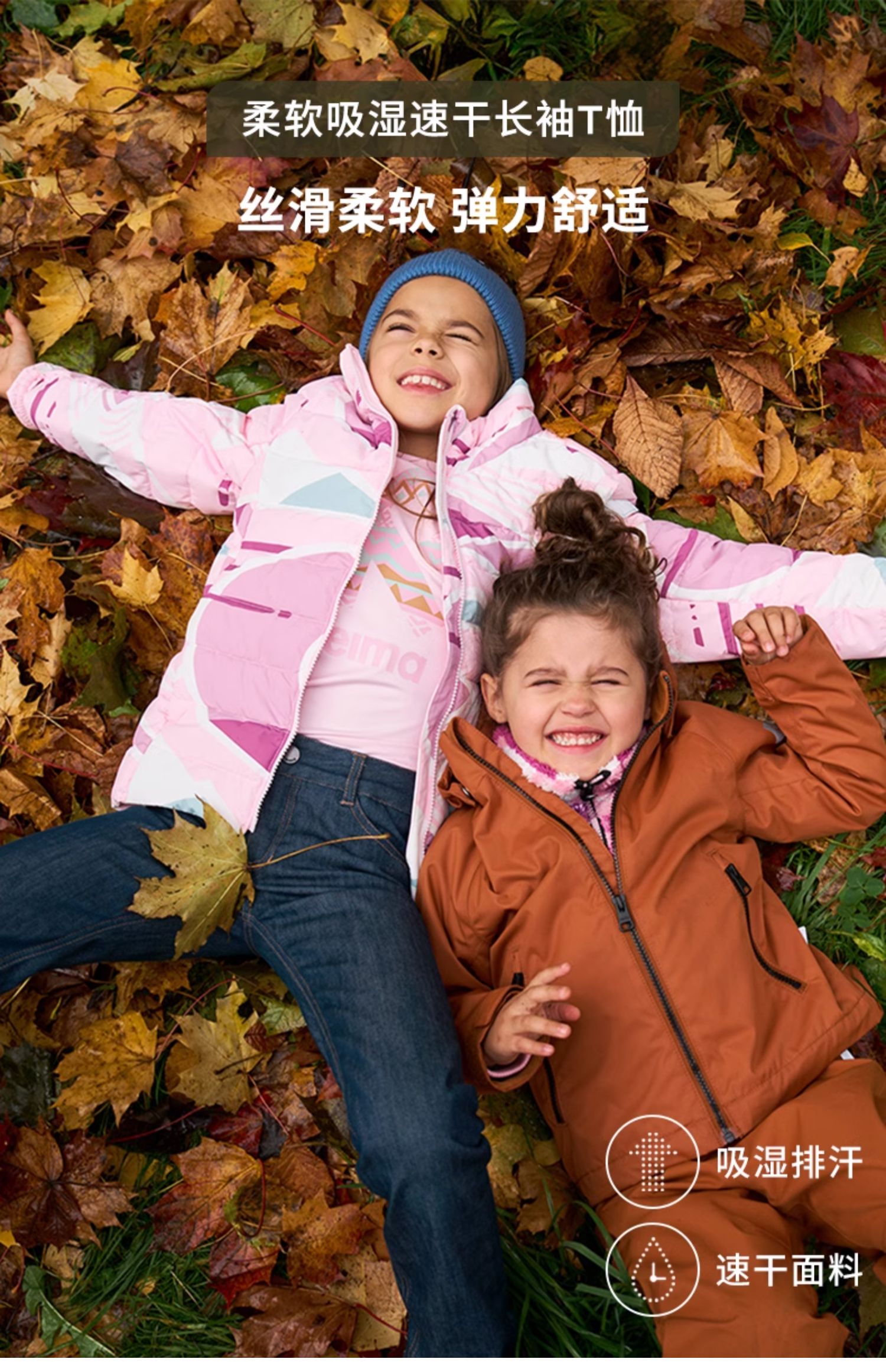 芬兰reima2024年秋冬新款男女儿童大童印花针织长袖速干运动T恤