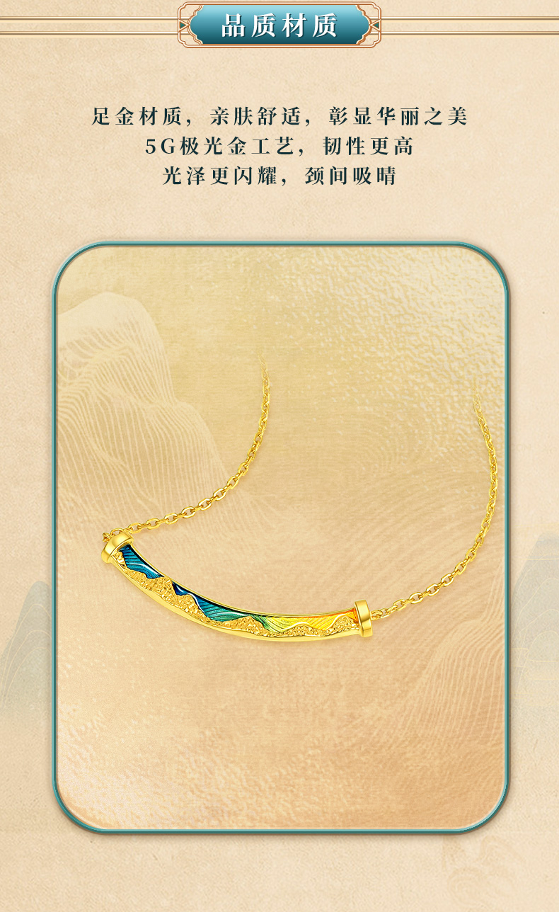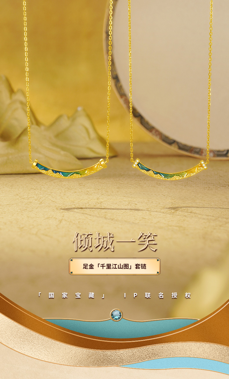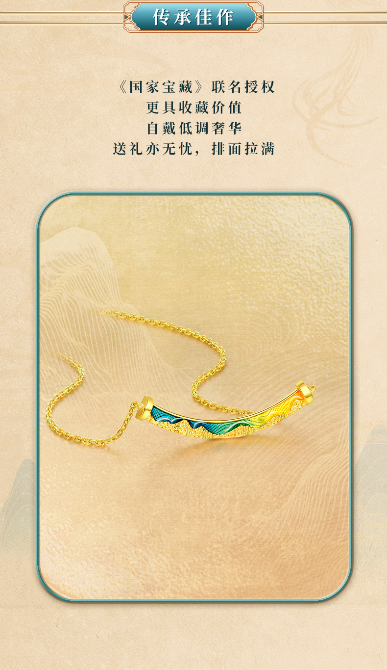 【小红书】周大生国家宝藏联名千里江山足金钻石吊坠项链黄金套链送女友礼物