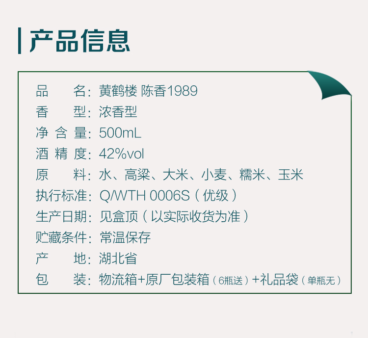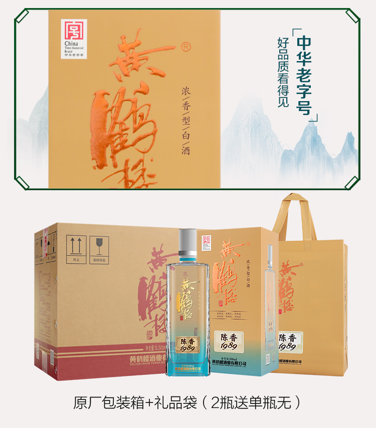 武汉 黄鹤楼 42度浓香型白酒陈香1989款 500ML