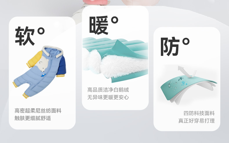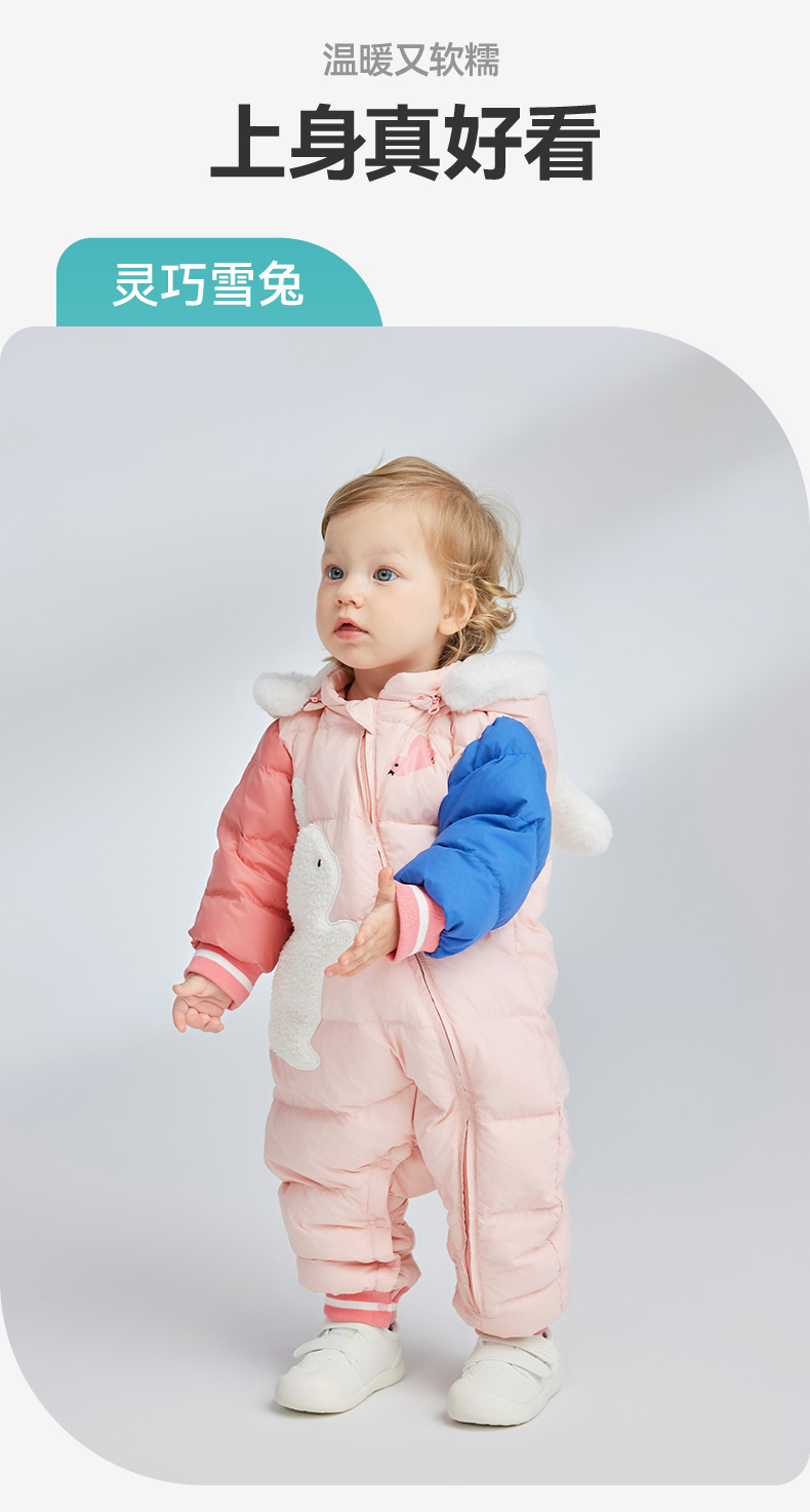 【限时259元】i-baby羽绒2合1婴儿连体羽绒服 新生幼儿宝宝冬季外出服爬服白鹅绒服