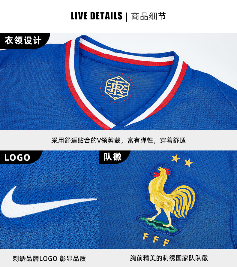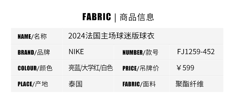 SFS正品 Nike耐克2024欧洲杯法国主场球迷版球衣FJ1259-452