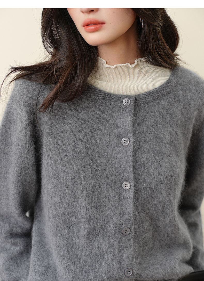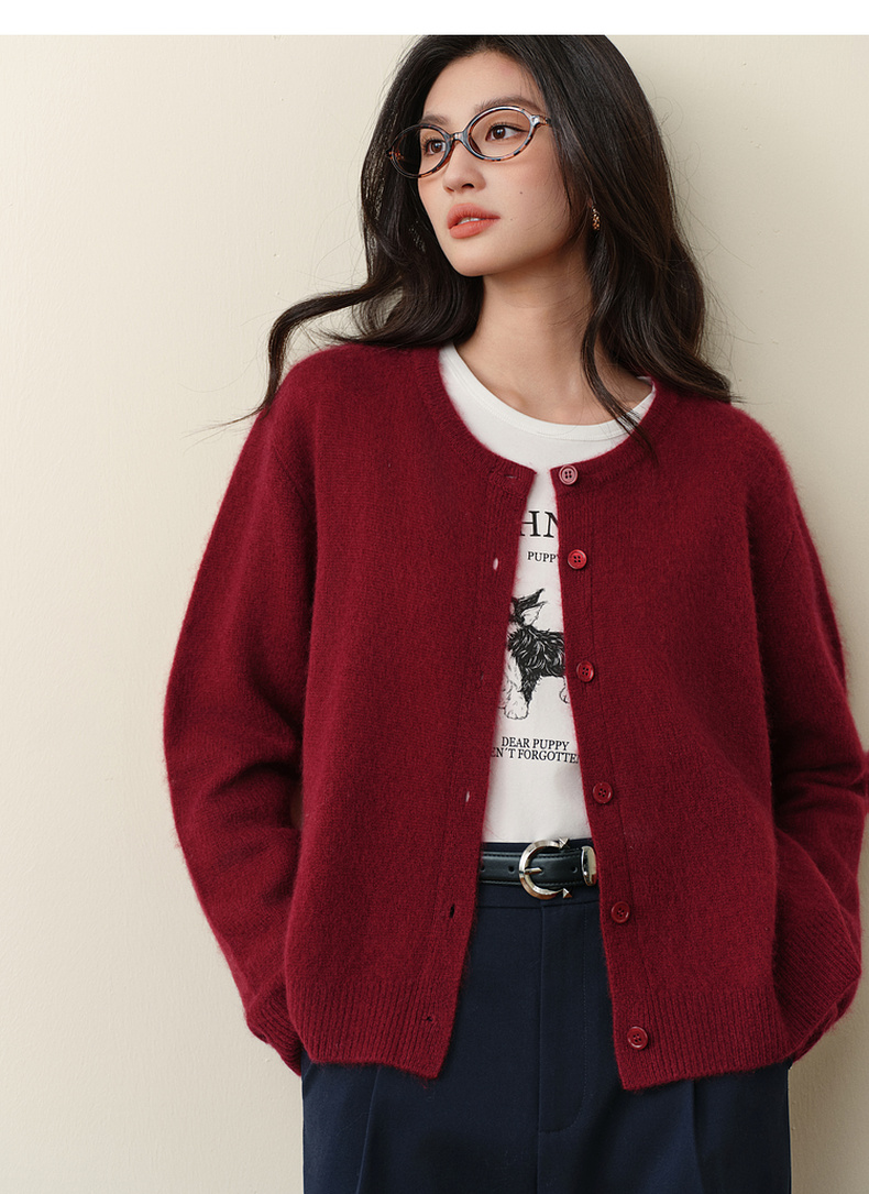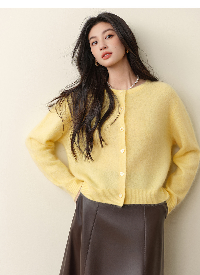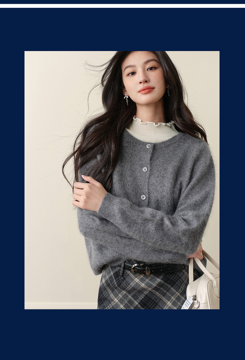 【严选】孟子义代言诗凡黎拉毛羊毛圆领针织开衫2025冬新款软糯舒适毛衣女7G9133001