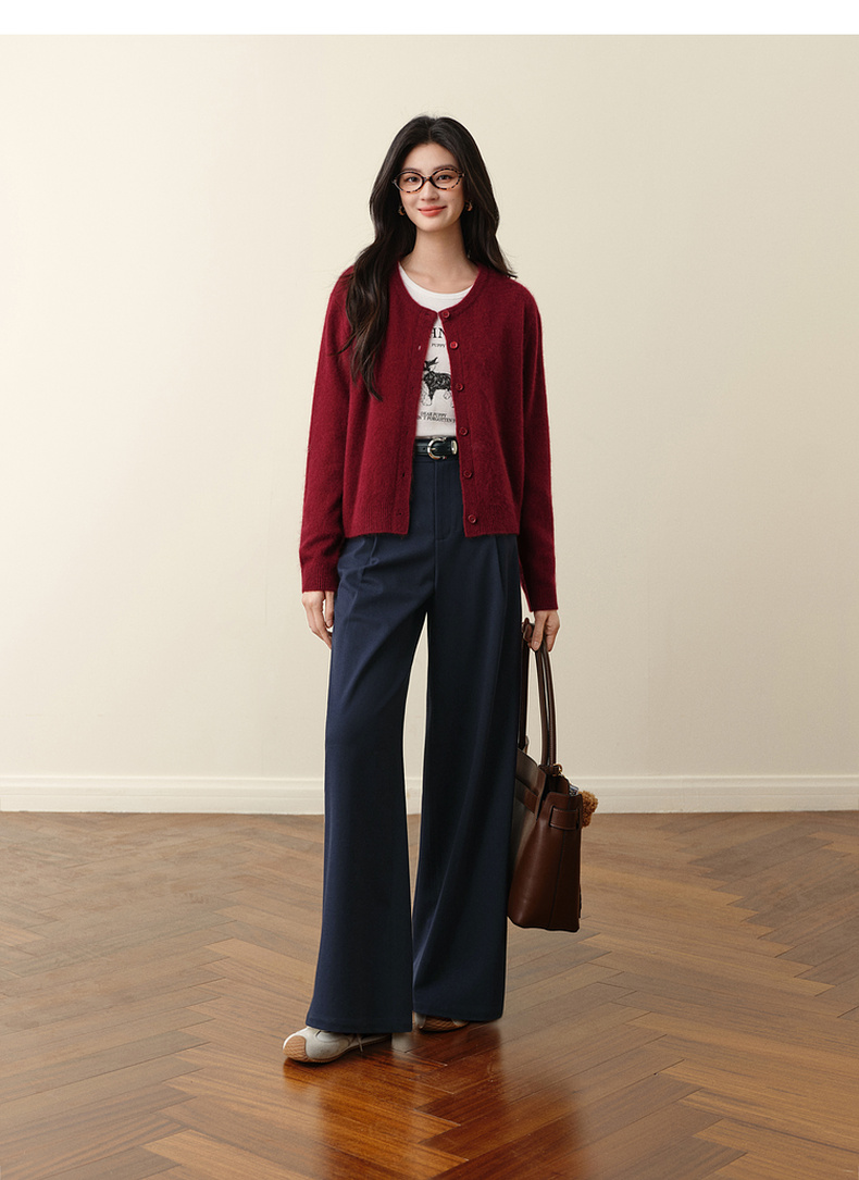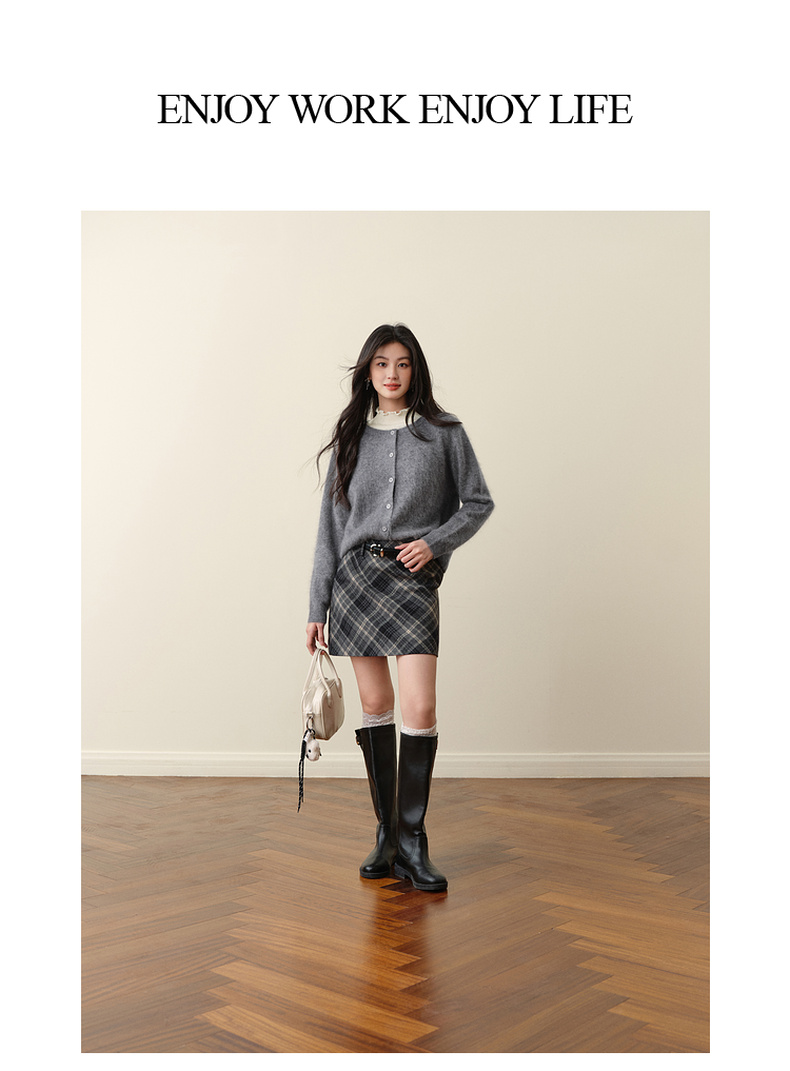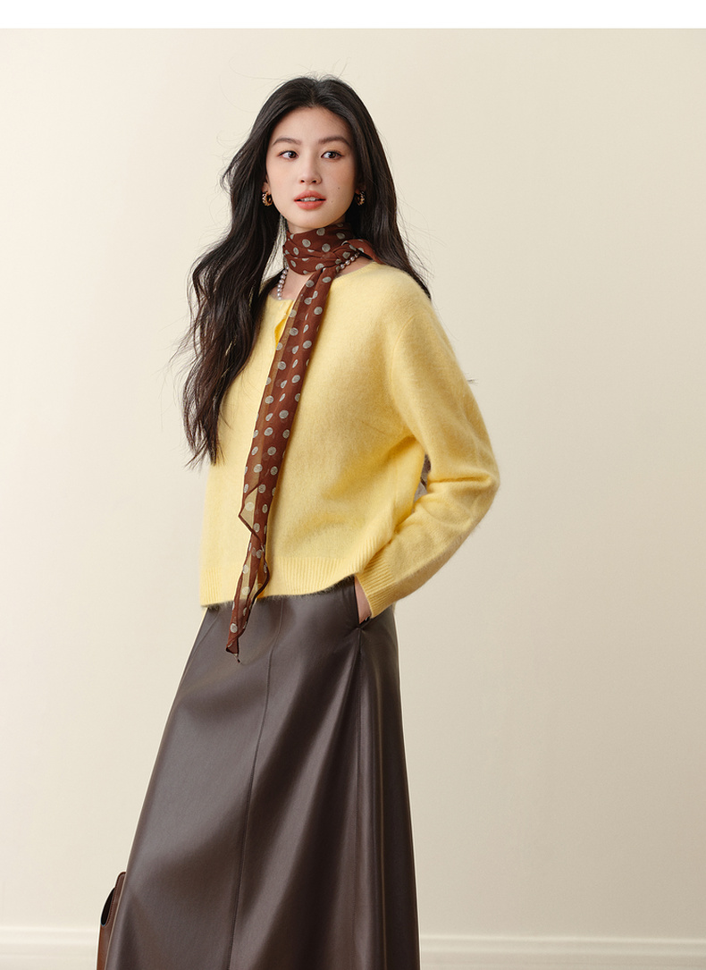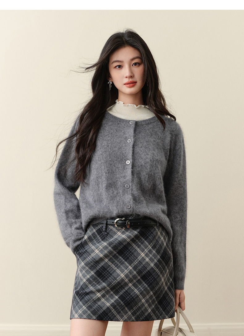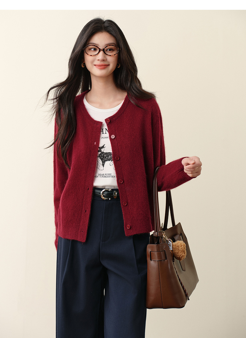 【严选】孟子义代言诗凡黎拉毛羊毛圆领针织开衫2025冬新款软糯舒适毛衣女7G9133001