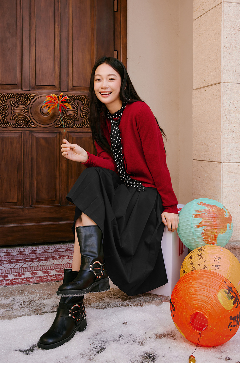 【商场同款】诗凡黎学院A字半身裙2025春新款百褶长裙女3FC140431