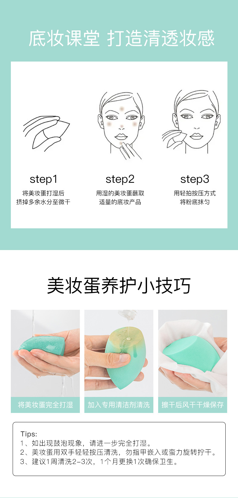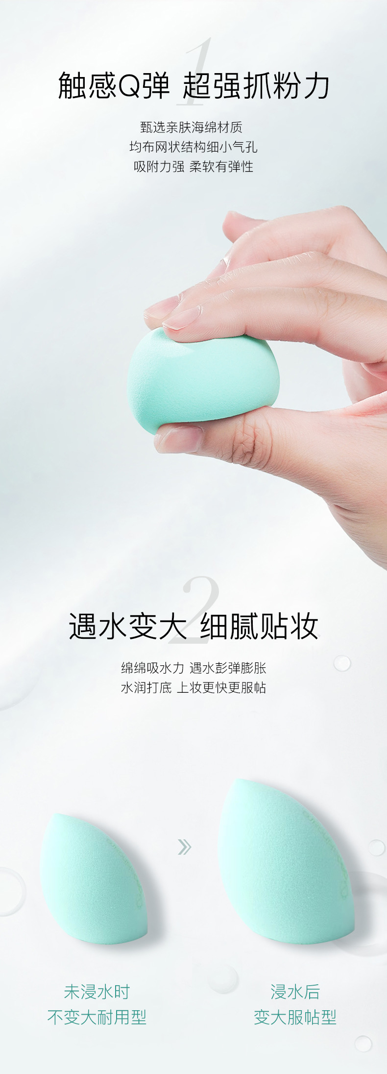 【积分兑换】美妆蛋5只 不吃粉超柔软细腻水滴化妆蛋脸部美容两用工具