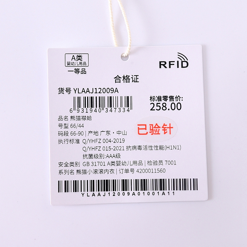 英氏-内衣类(春)F2熊猫襟蛤英氏白73CM