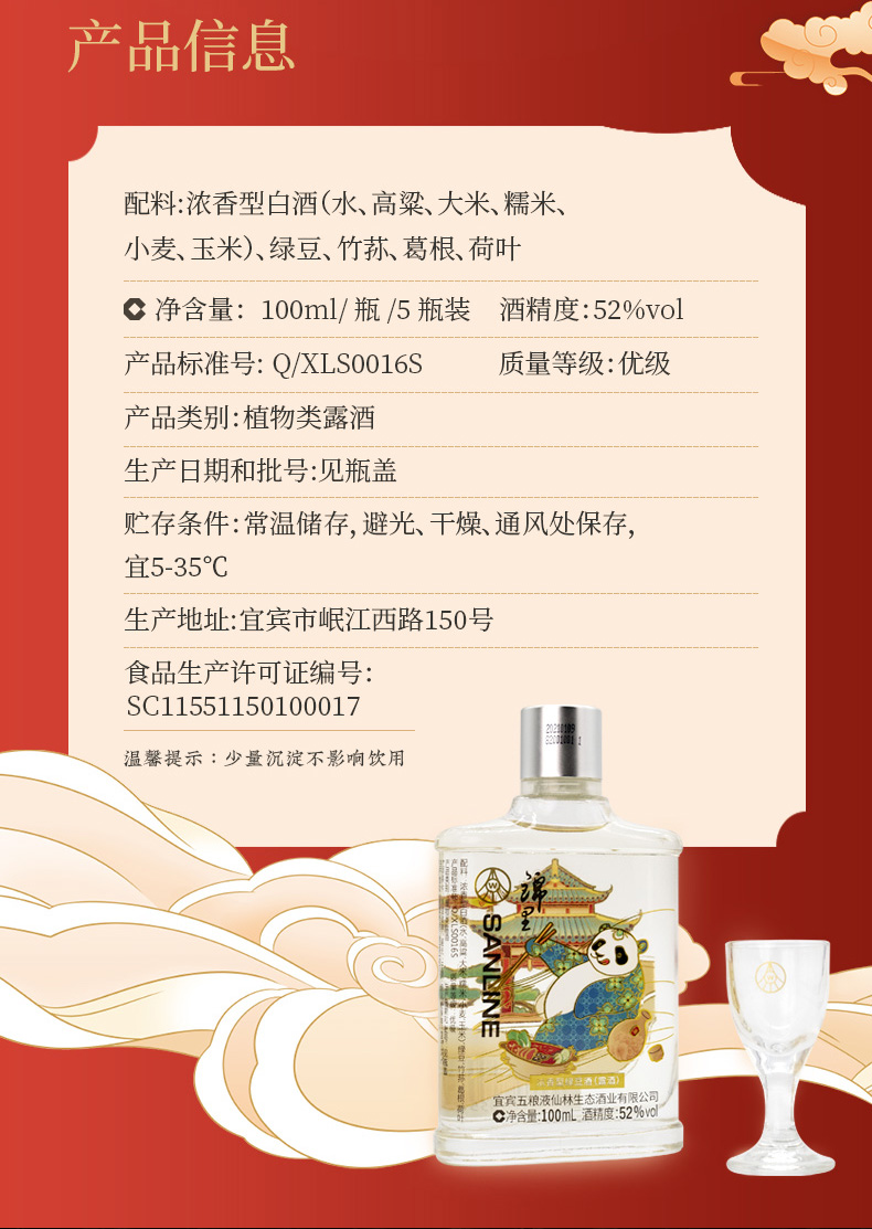 宜宾五粮液仙林生态 锦里透明瓶52度 植物类露酒 100ml*5礼盒装