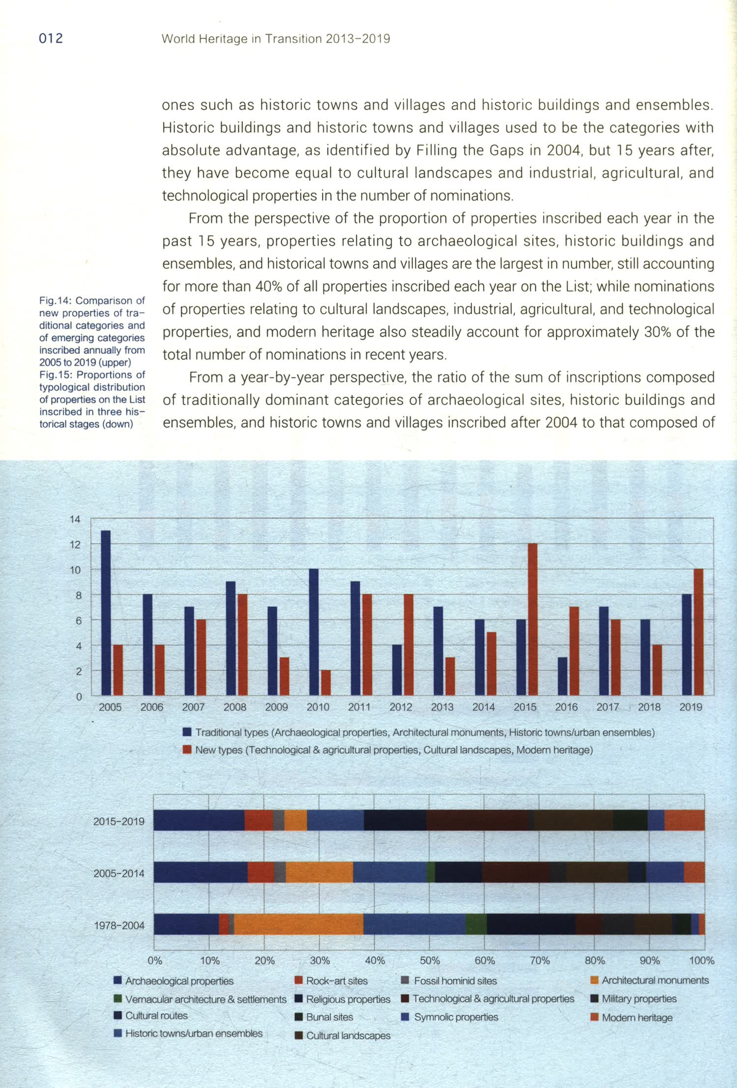 《变化中的世界遗产2013-2019》中论文围绕2013年至今历年世界遗产委员会会议内容展开讨论,关注全球范围世界遗产的申报、保护与管理,世界遗产领域不同参与者的观点与认知角度,全球战略的实施效果,《操作指南》等世界遗产领域规则文件的修订等多方面的问题。论文详细、深入地介绍世界遗产的国际管理体系、世界遗产公约的运行方式、世界遗产的申报与保护管理,以及遗产大会所反映出的遗产理论和保护实践发展的近期趋势。