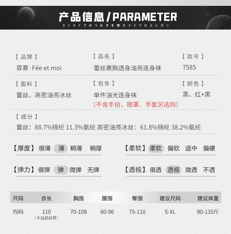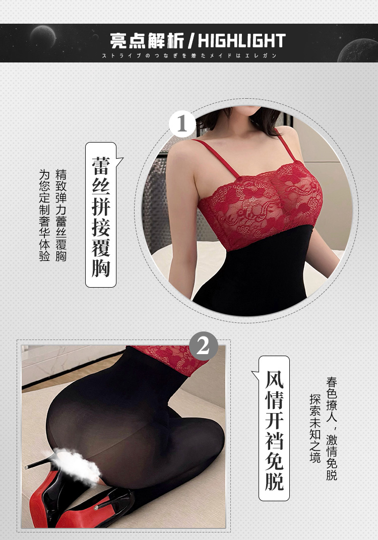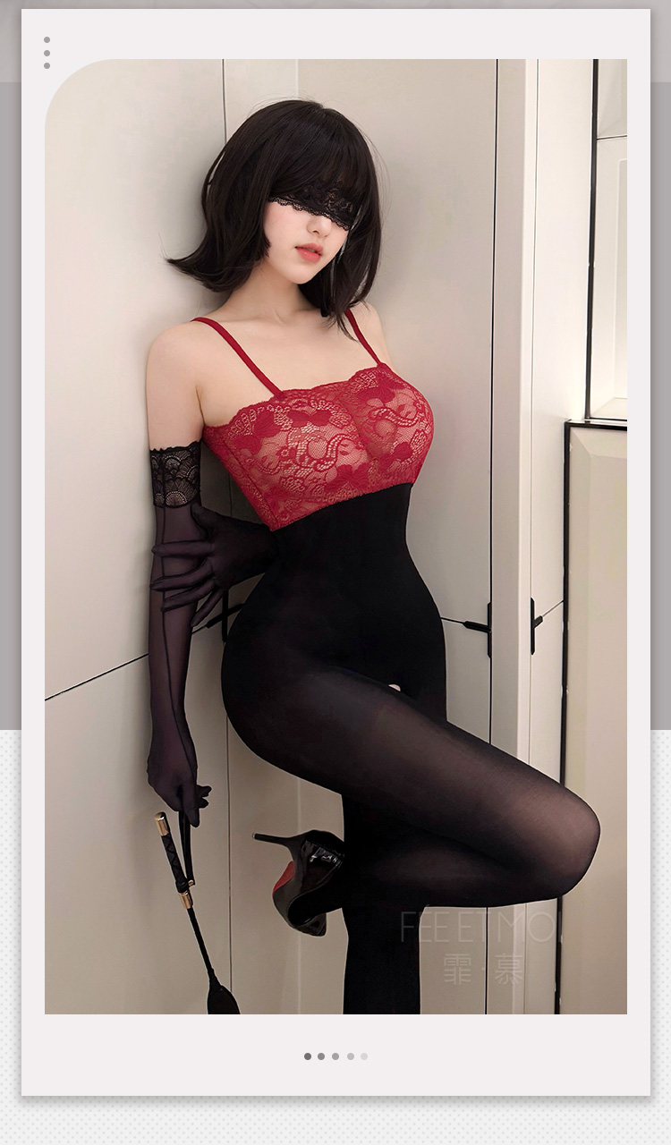 霏慕蕾丝裹胸透视开档油亮连身袜套装