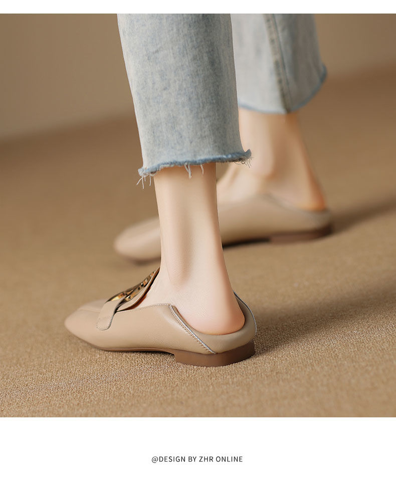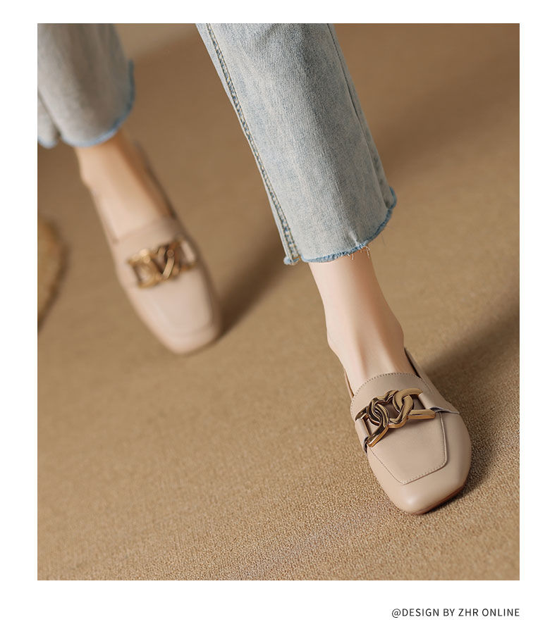 ZHR乐福鞋女2023夏季新款百搭时尚鞋一脚蹬软底平底半拖单鞋