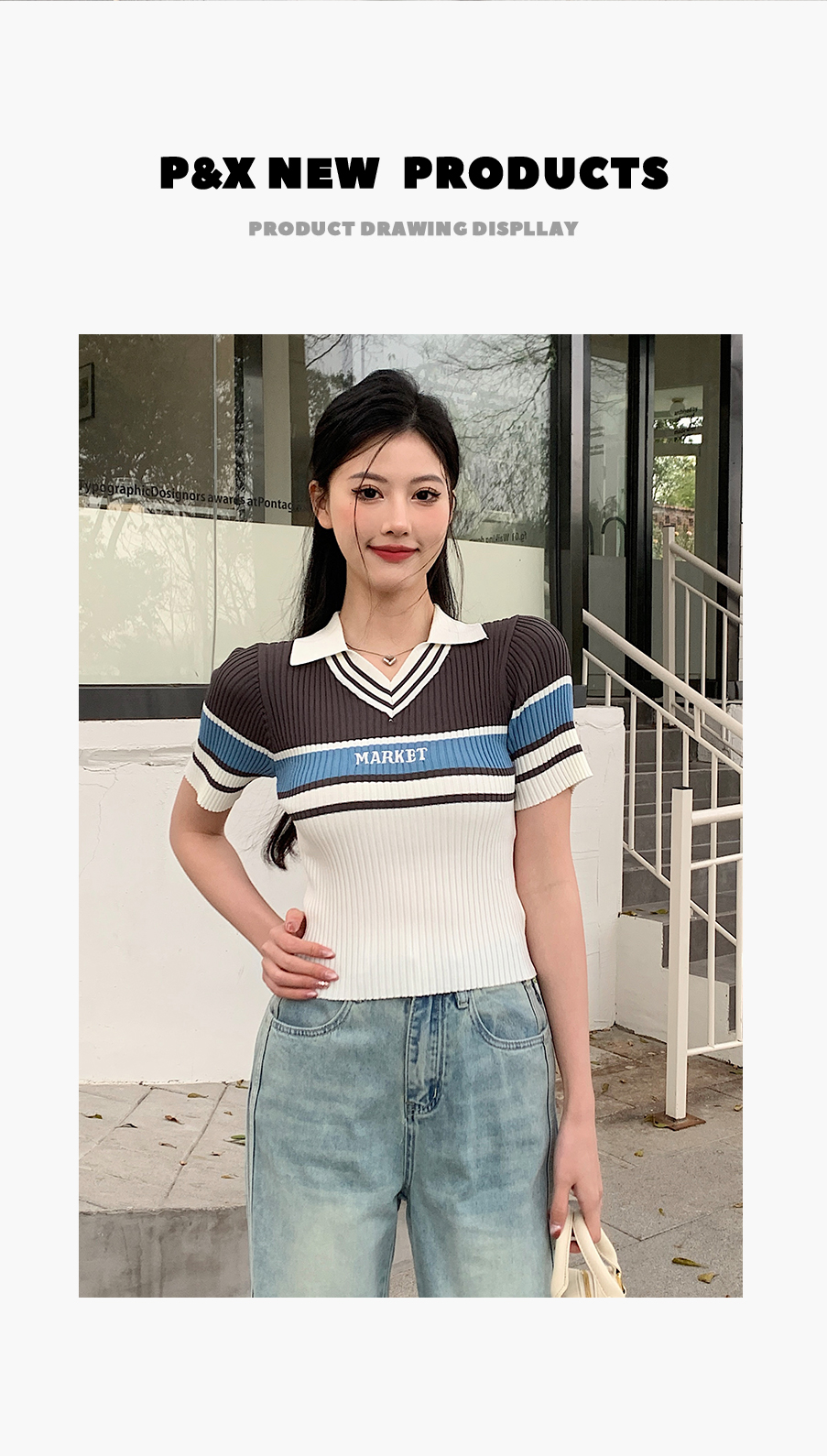 P&X设计师女装 针织短款T恤 修身版 824102768B 花色