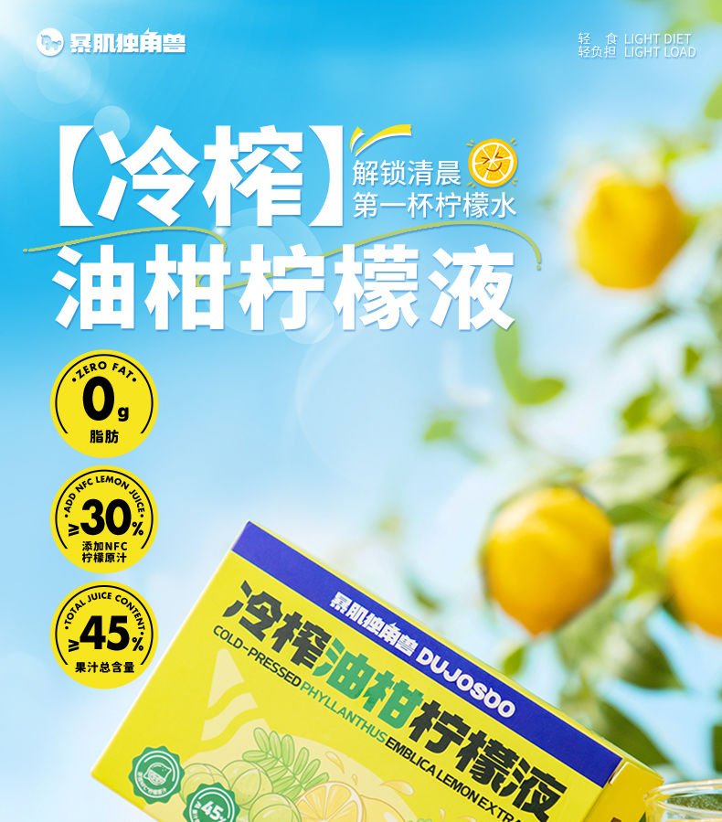独角兽暴肌厨房冷榨油杆柠檬液150g0脂柠檬汁饮品冲饮料独立包装