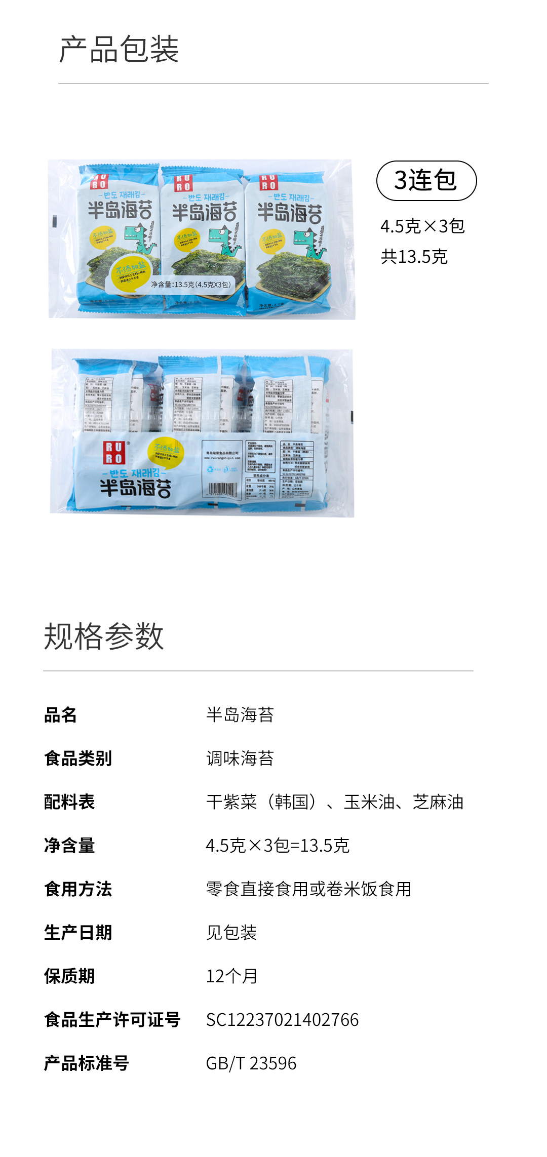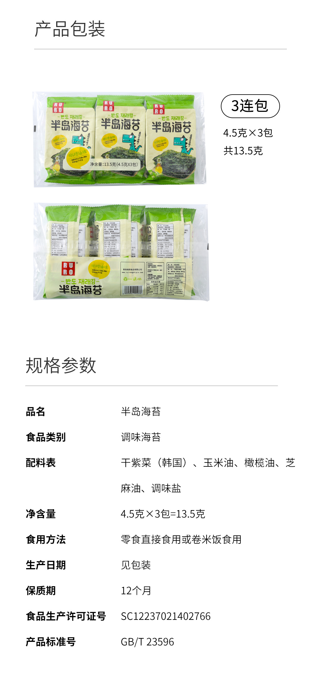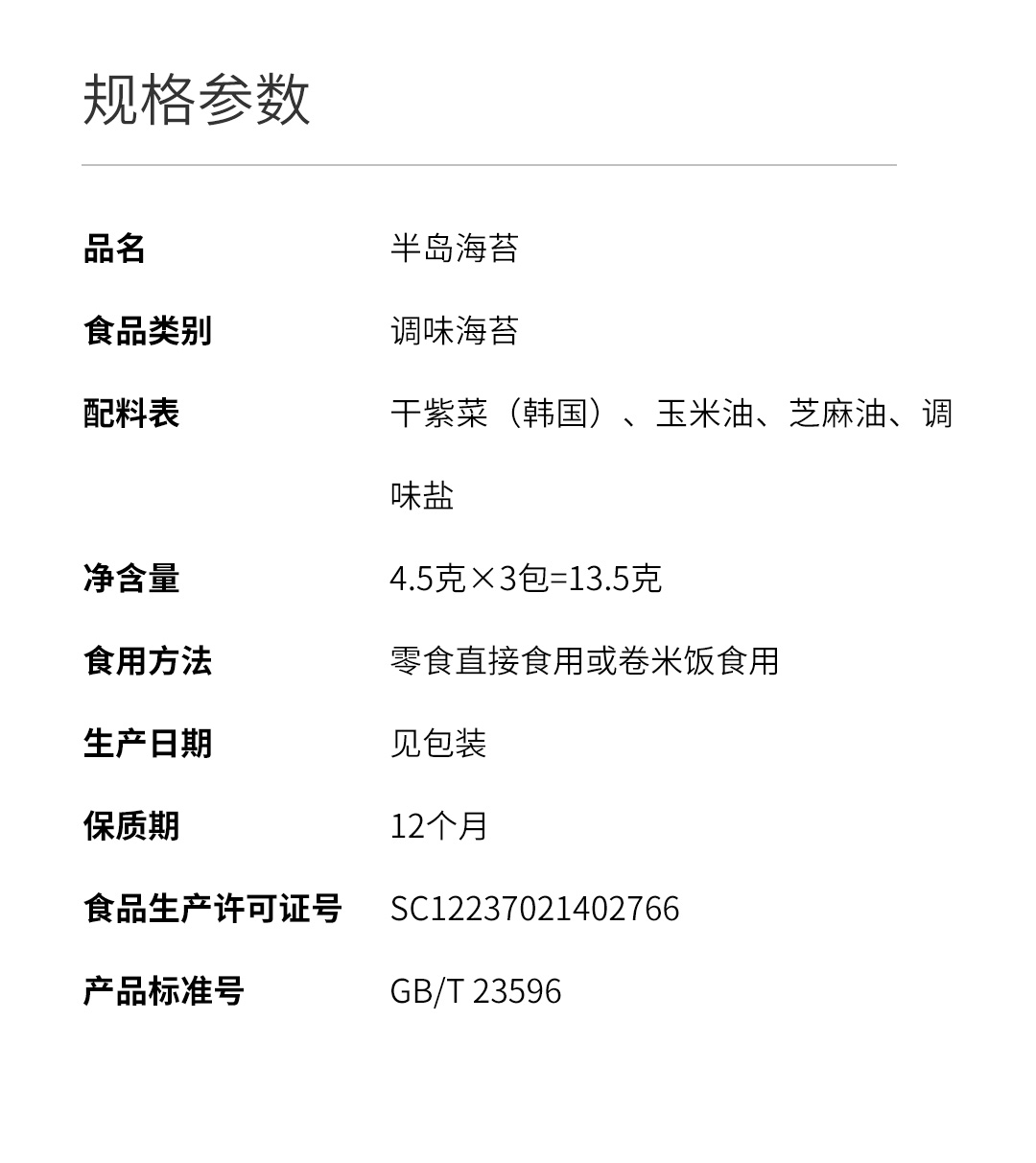 自营(半岛)-海苔 4.5g/包 多重口味 即食儿童零食紫菜包饭寿司包饭脆片