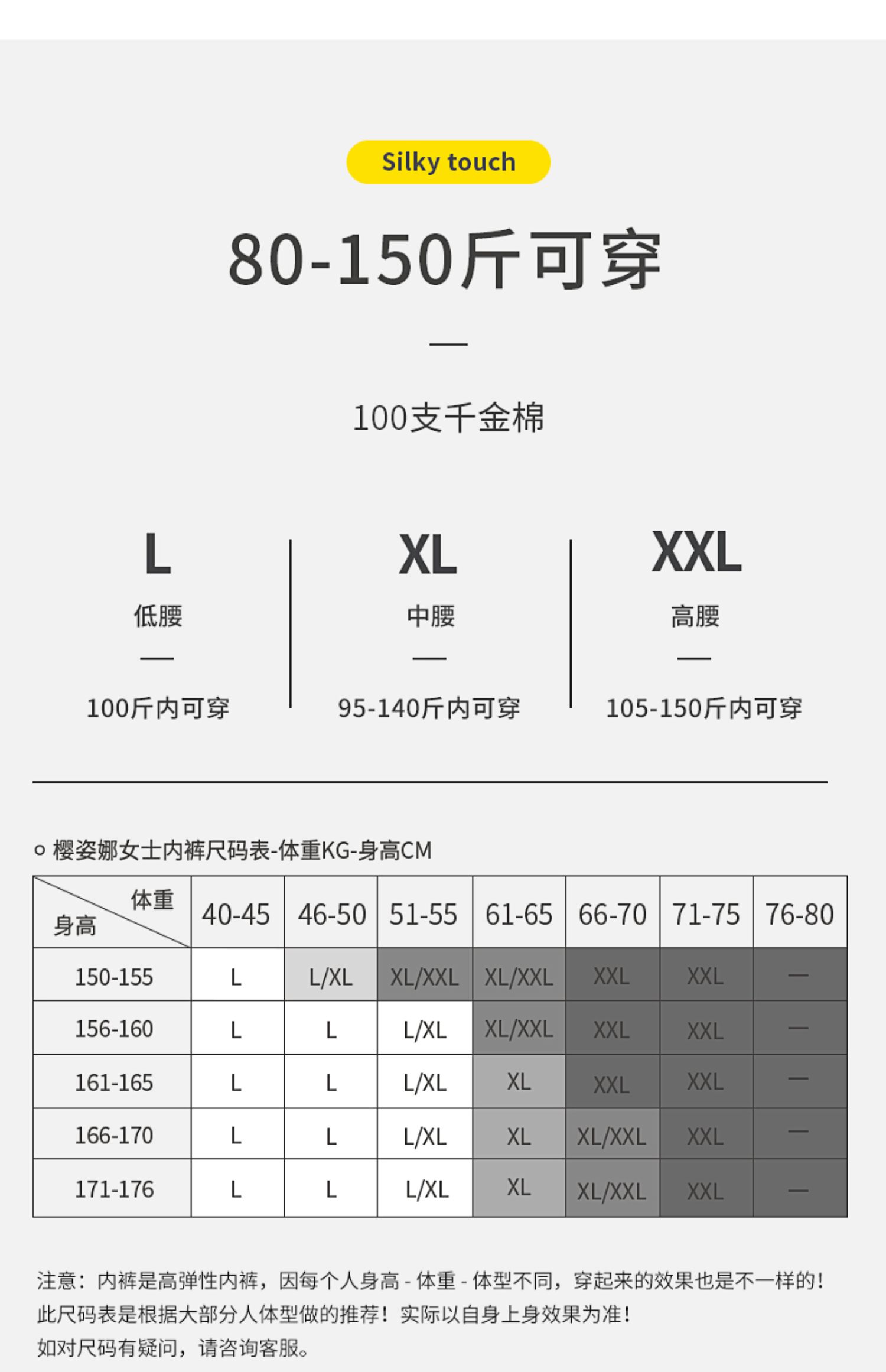 【100支新疆长绒棉樱姿娜内裤】1000朵棉花选一朵千金棉桑蚕丝底档清爽透气拒绝闷潮自由“呼吸”【BPQ】