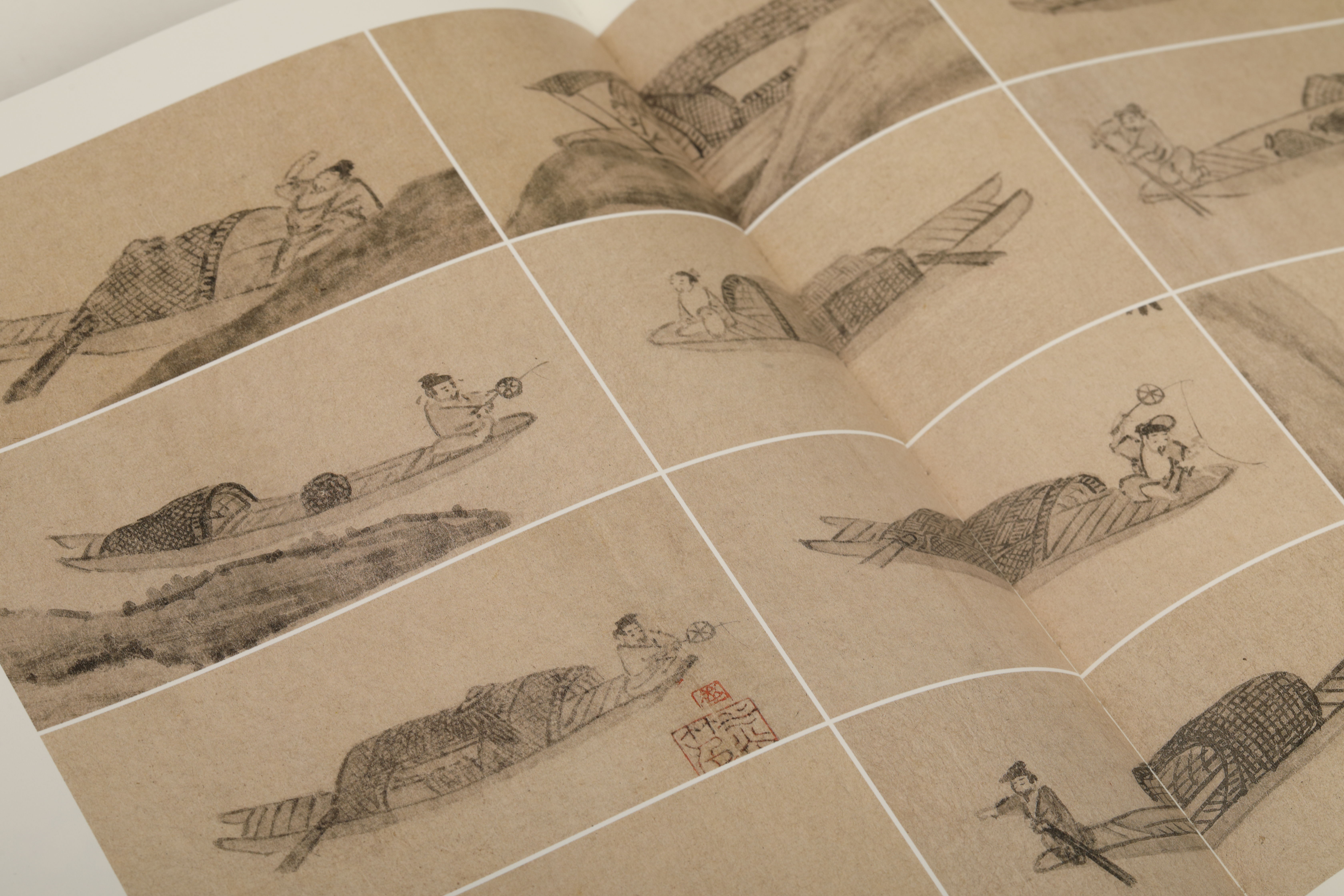 本册为《中国绘画名品其中之一,展示了吴镇的两张《渔父图》,前者藏于上海博物馆,后者藏于故宫博物院,一者为卷,一者为轴,都是吴镇经典的渔父题材。前者以长卷的形式描绘了十几艘渔船荡漾与江湖之中的情景。后者画面采用“一河两岸”式的构图,以典型的阔远手法描绘江南山水之景。近处一片山坡,三两棵树,远处山峦起伏,中间隔以宽阔水面,绘有一叶扁舟,是吴镇的典型面貌。 《中国绘画名品》为上海书画出版社继《中国碑帖名品》后的又一以中国美术史中经典作品为主体的系列丛书,本丛书选取了自魏晋至清末的经典绘画作品,以单幅作品、同画家的作品、同主题的作品、同题材的作品等为个体,预计出版100本。每本均由整幅拉页及分段赏析两部分组成,在分段赏析部分通过文字导读,将绘画中所呈现的情节、技法及绘画背后所蕴含的艺术、历史、文化涵意展现给读者。在行文上分为整图拉页、综述、作者介绍、辑封、作品简述、分段解析、递藏八个部分。