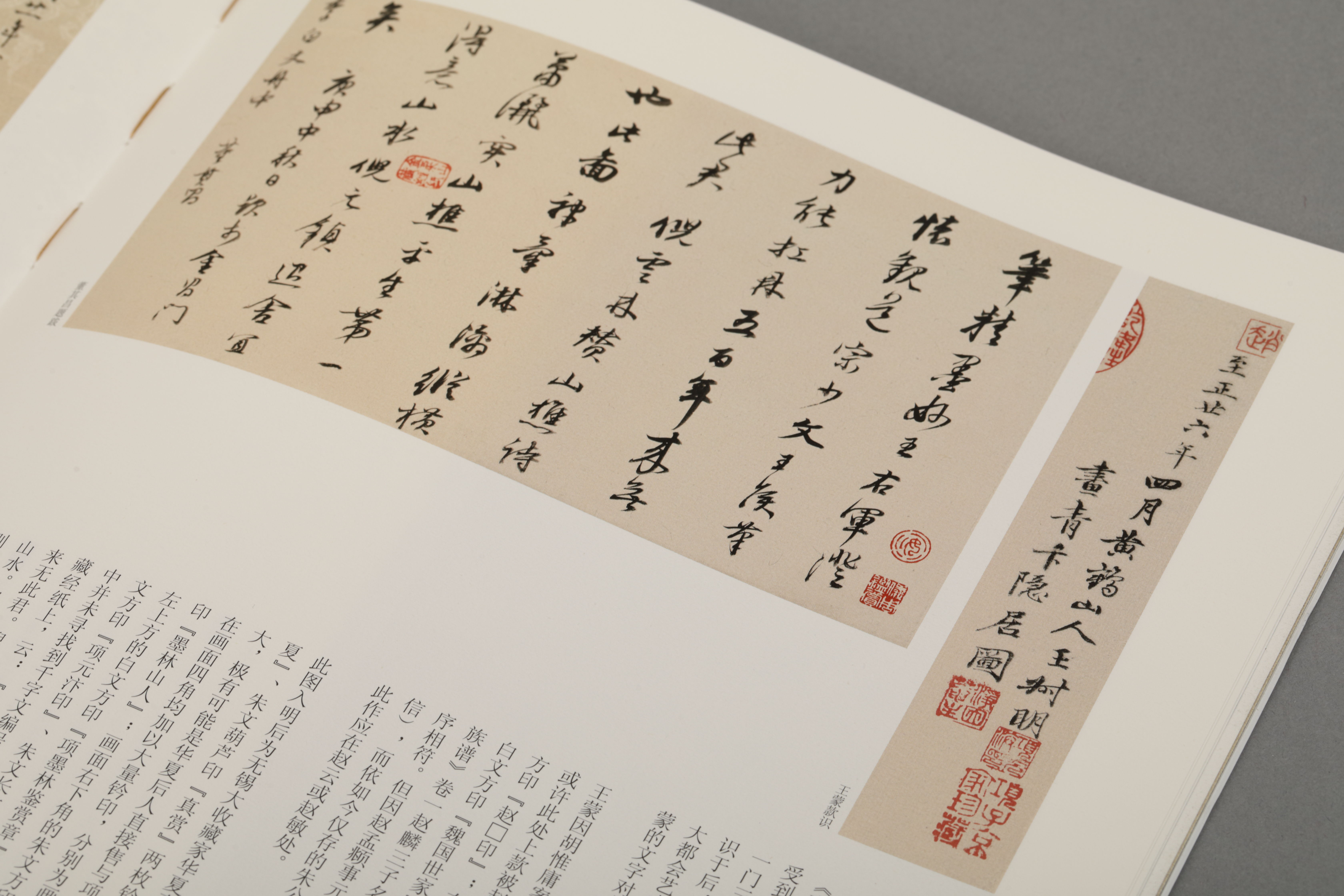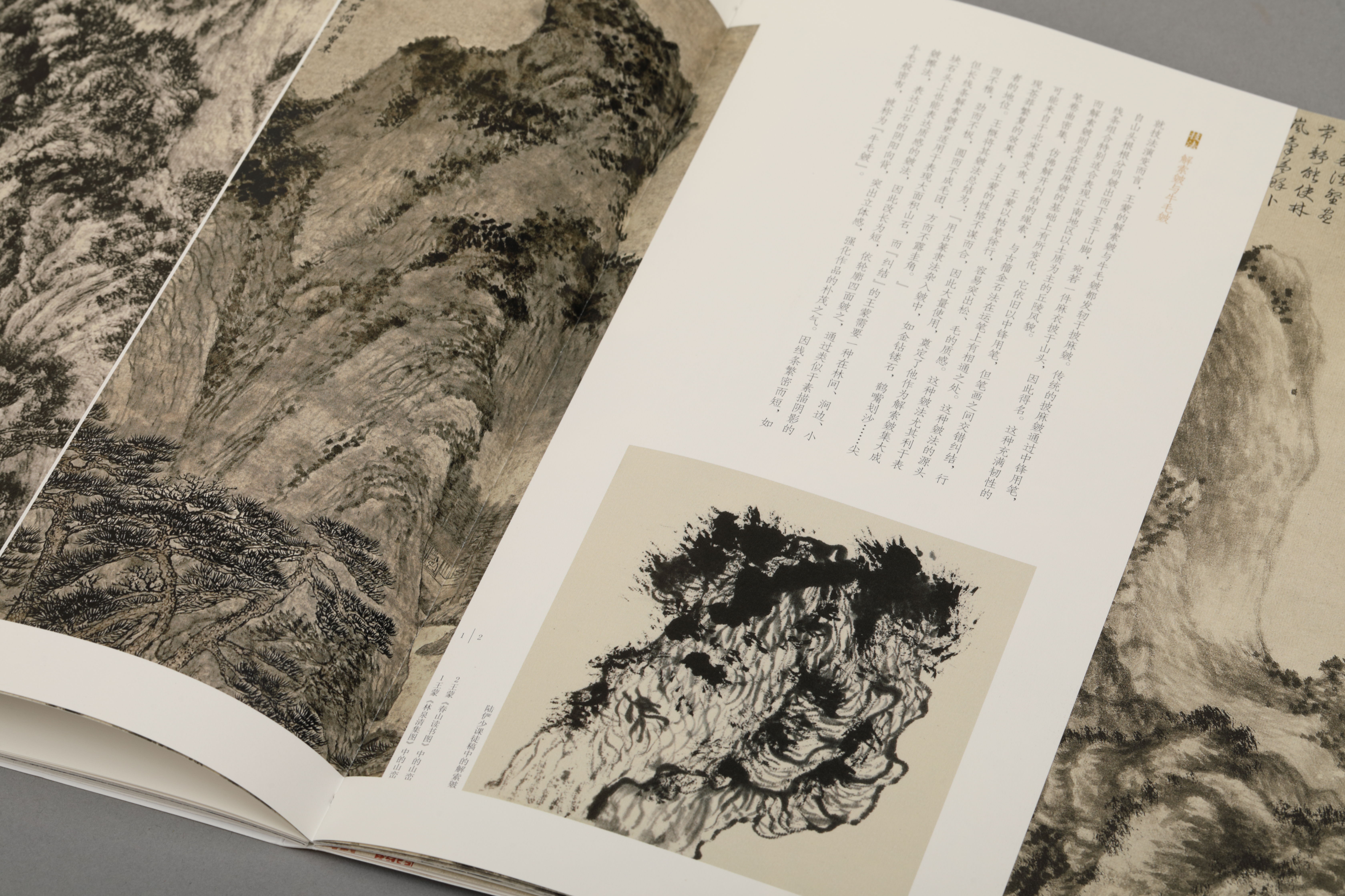《青卞隐居图》《葛稚川移居图》分别代表了王蒙绘画的两种风格。而王蒙的山水画承其外祖赵孟頫,更直接影响了元代及后世的绘画趣味。前图被董其昌尊为“天下第一王叔明画”,王蒙一改早年通过大量的披麻解索皴的习惯,运用了皴染并用的技法,并对墨法的使用更为精到;后图为王蒙繁密山水的典范之作,扭转而下的牛毛皴与披麻解索皴充斥着整幅画面,有强烈激荡,表达其在古典与现代、繁琐与简明之间的精准拿捏。而此册导读之优还在将王蒙的众多代表作进行对比、解析、概括而深入,丰富而精彩。