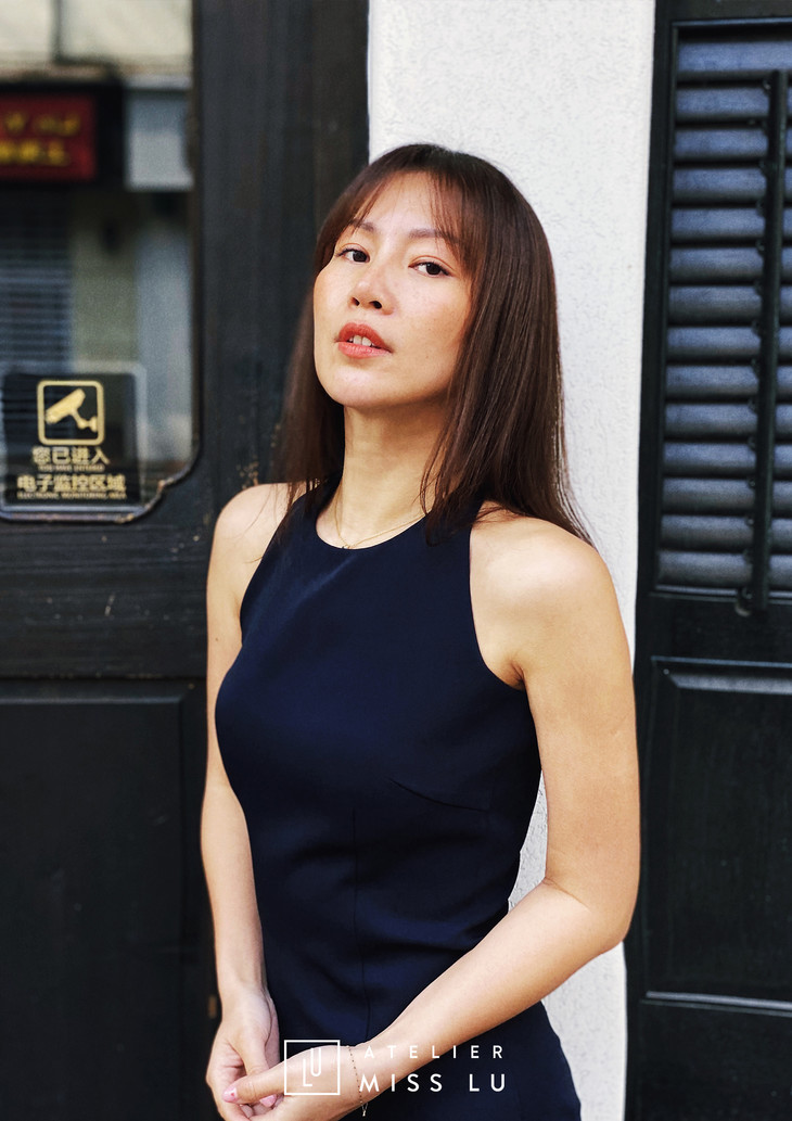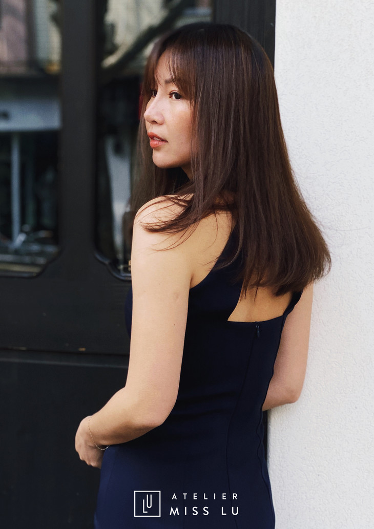 AtelierMissLu / Miriam-藏青露肩无袖连身裙/0000554