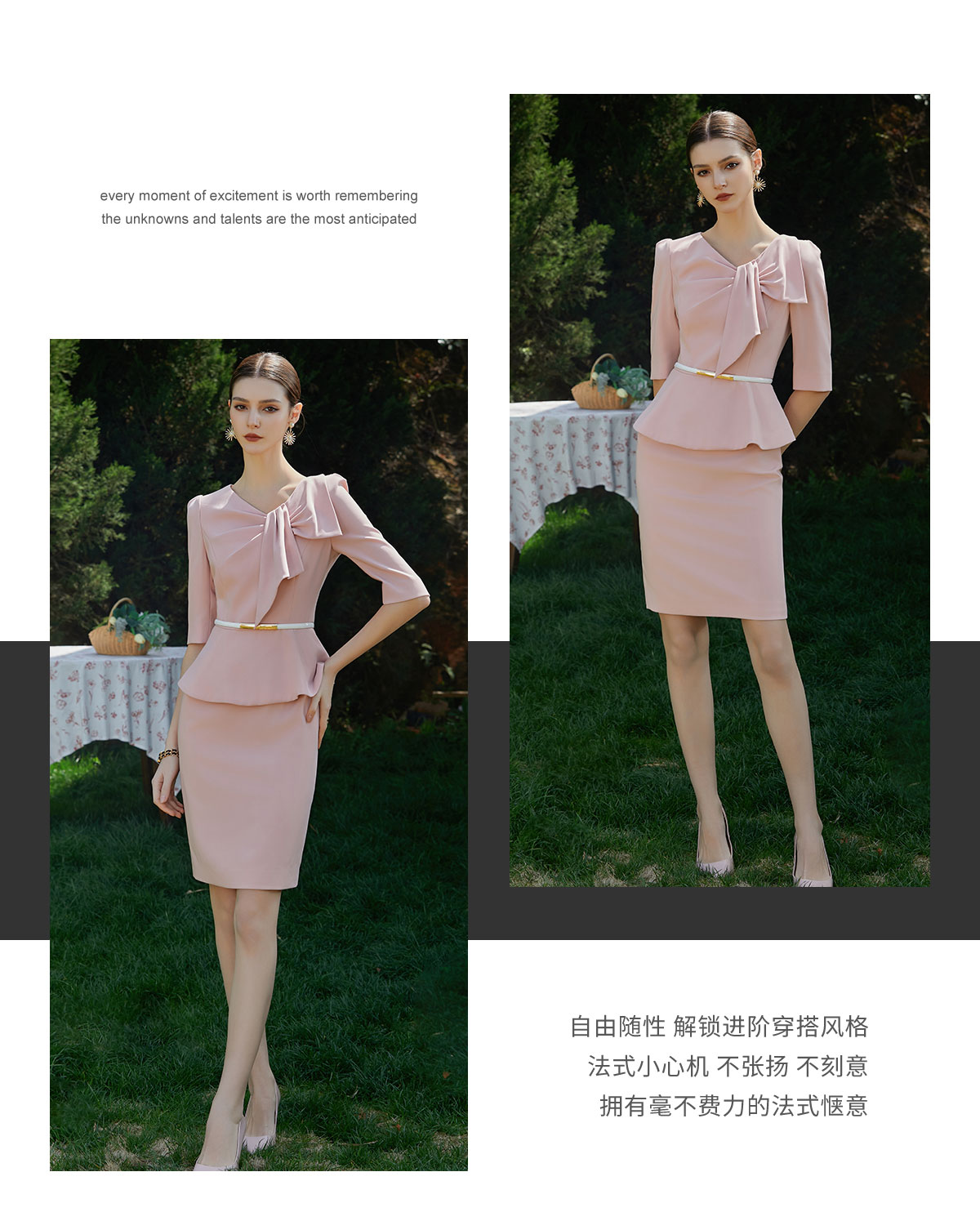 IWY/制服职业套装高端粉色连衣裙女名媛范假两件西装Q929