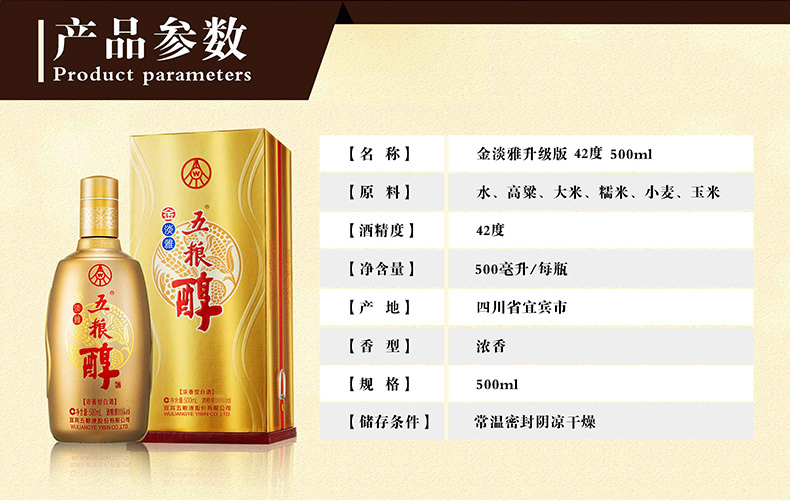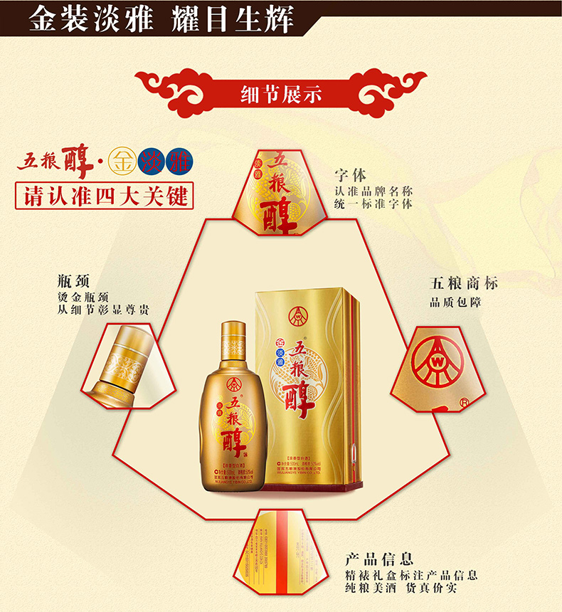 42度五粮醇金淡雅500ml×6 整箱装(2017年老酒)
