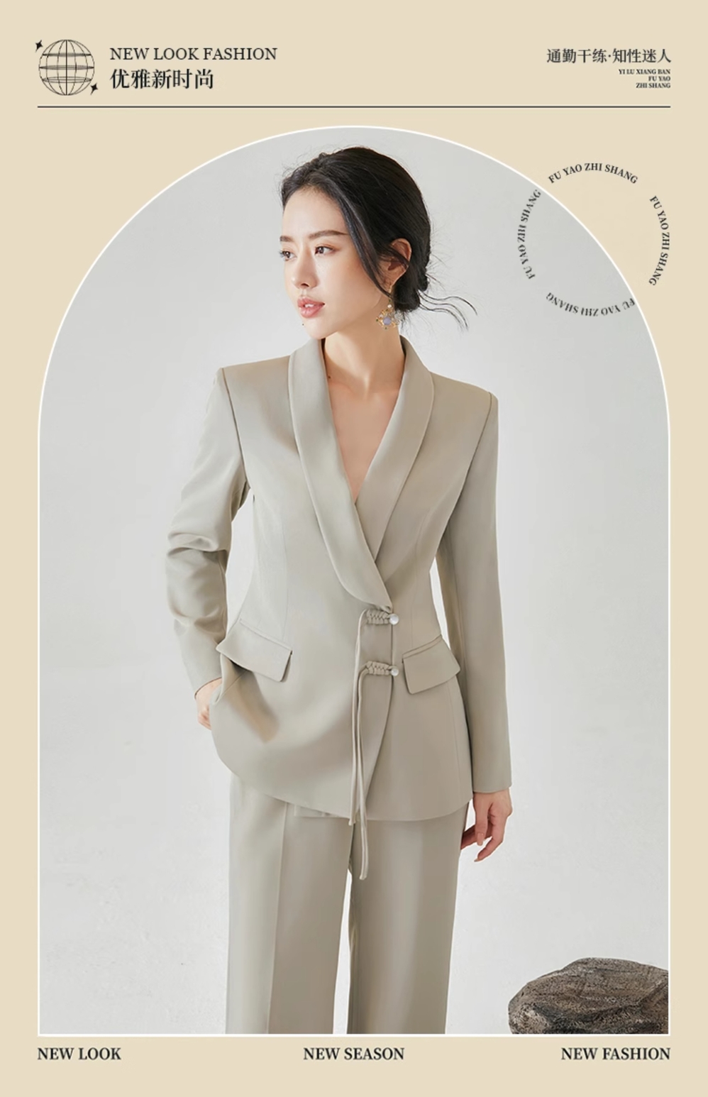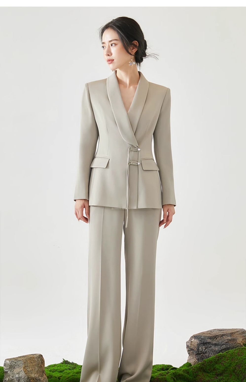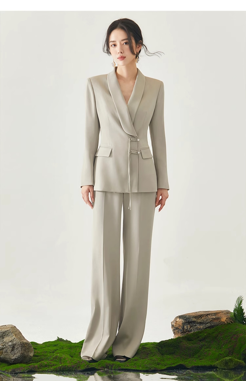IWY/灰色新中式套装秋冬高级感面试西装外套上镜国风主持人年会装FYC224+FYP225