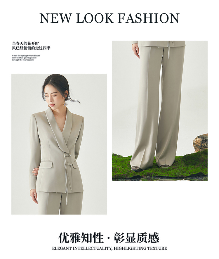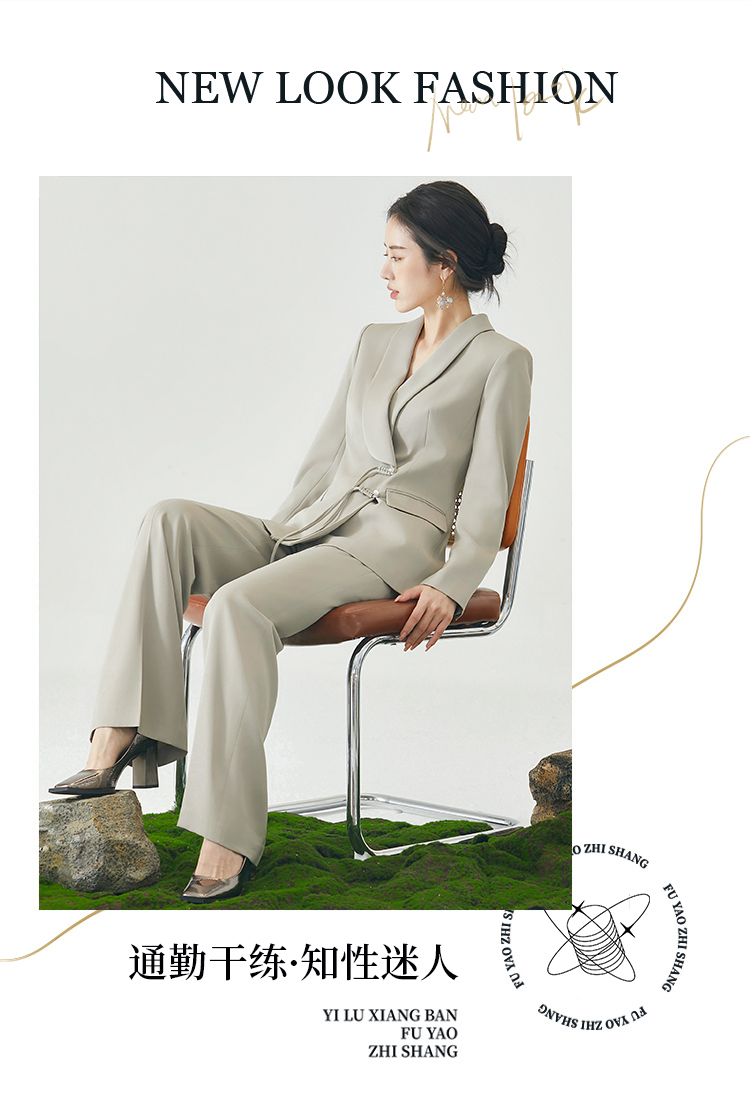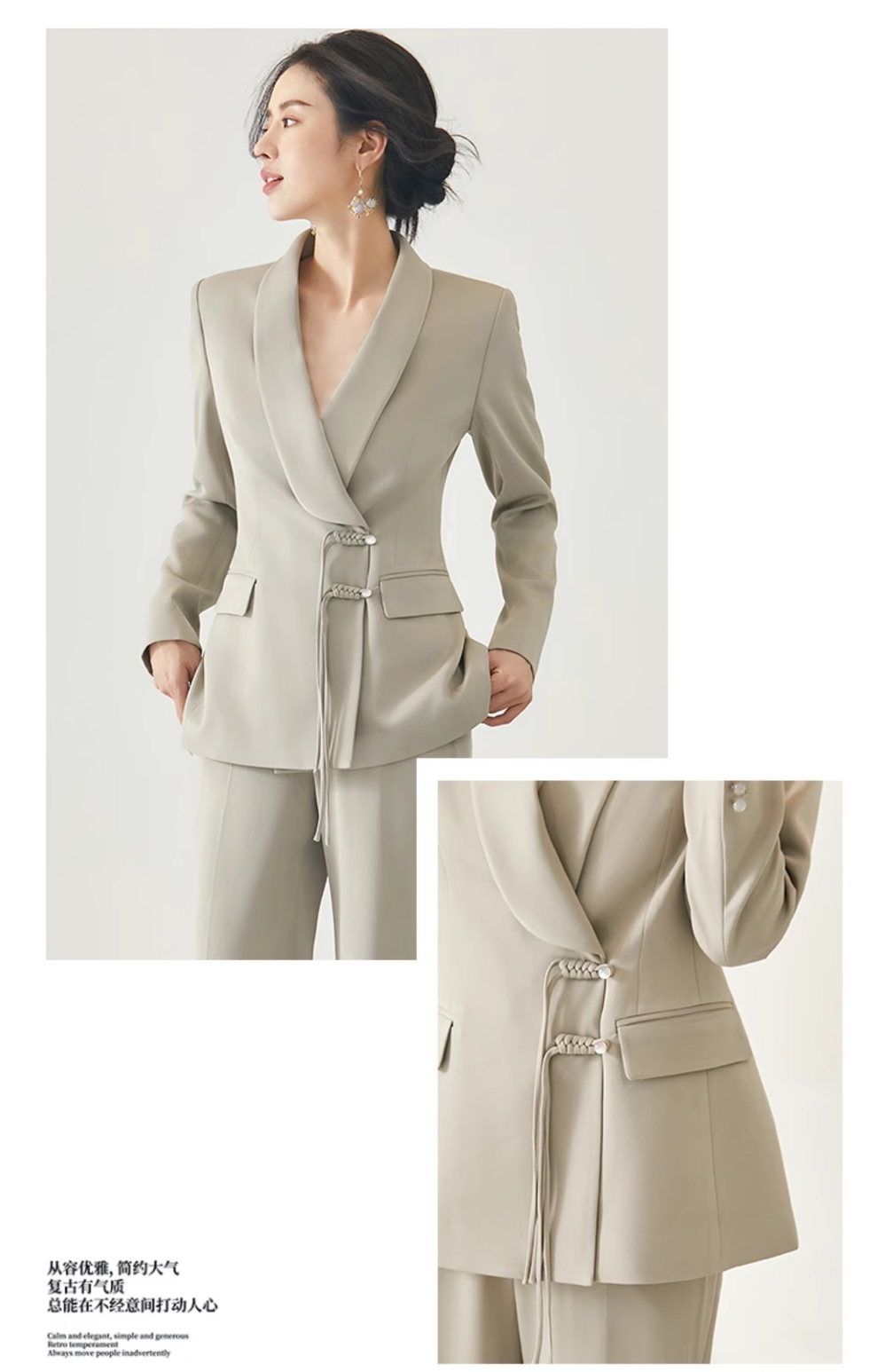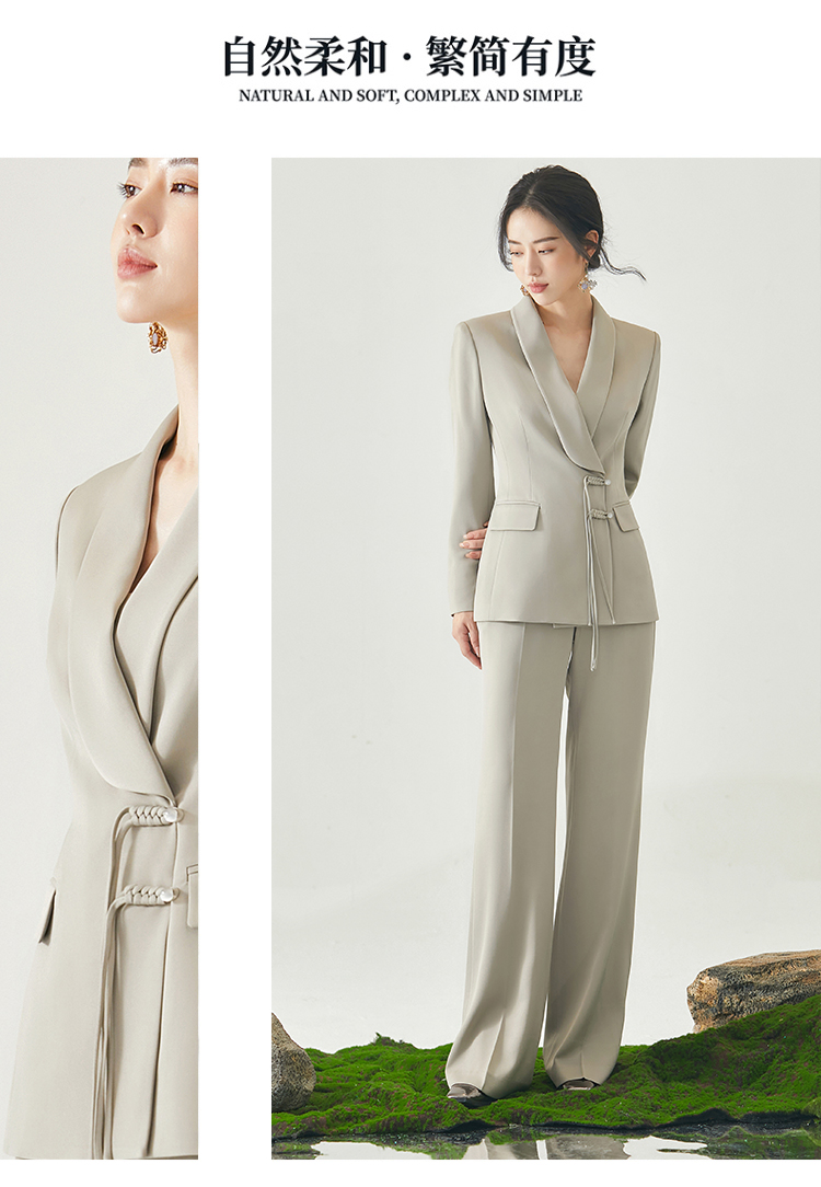 IWY/灰色新中式套装秋冬高级感面试西装外套上镜国风主持人年会装FYC224+FYP225