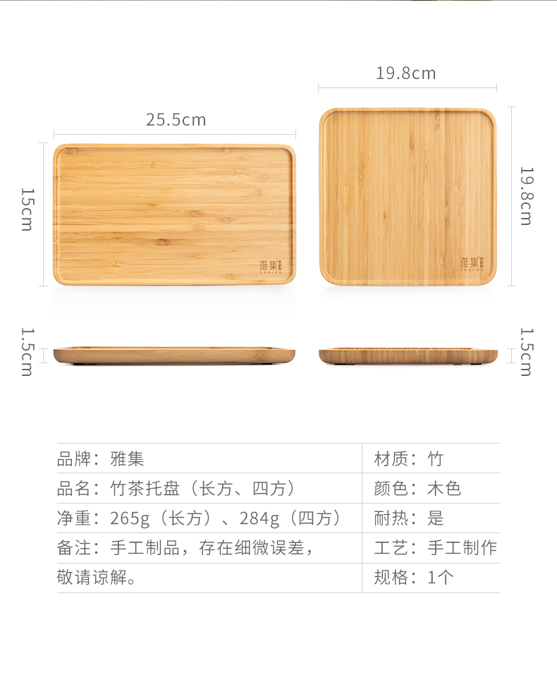 雅集茶具茶盘竹茶托盘25.5cm*15cm(长方)