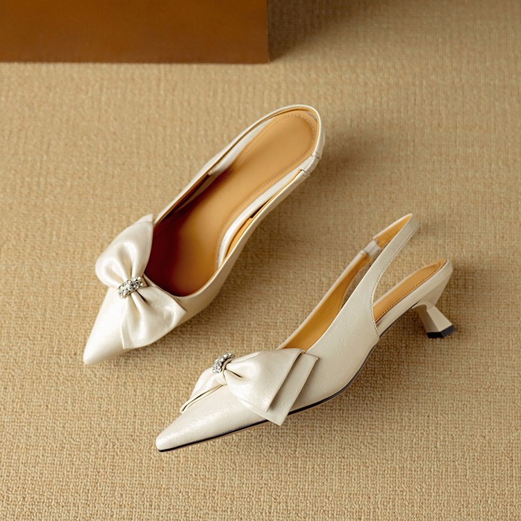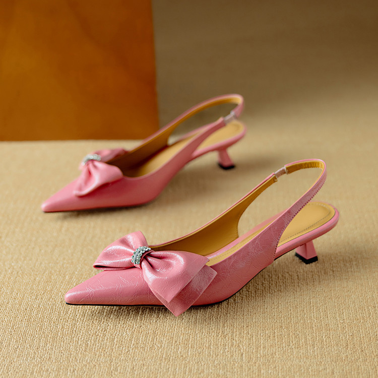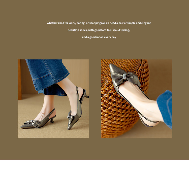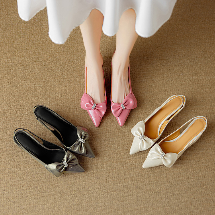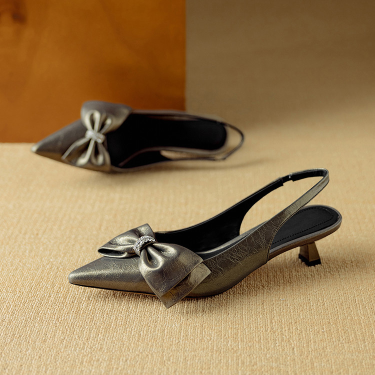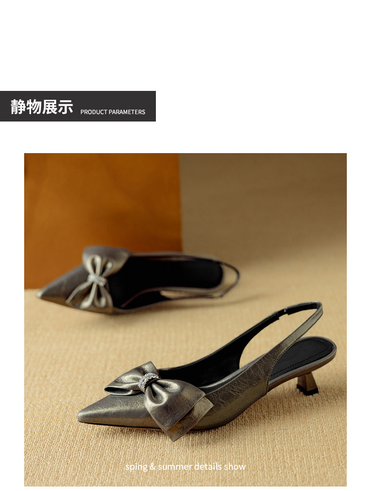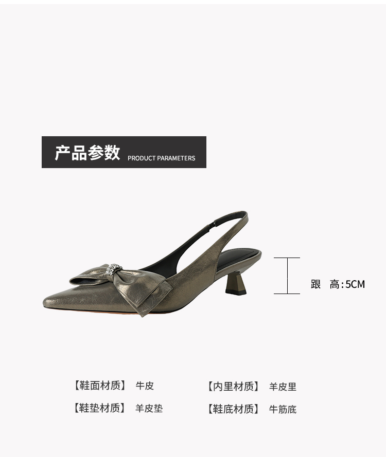 【预售5天】春夏新款包头凉鞋女法式小众尖头猫跟高跟鞋蝴蝶结单鞋DB&M6209