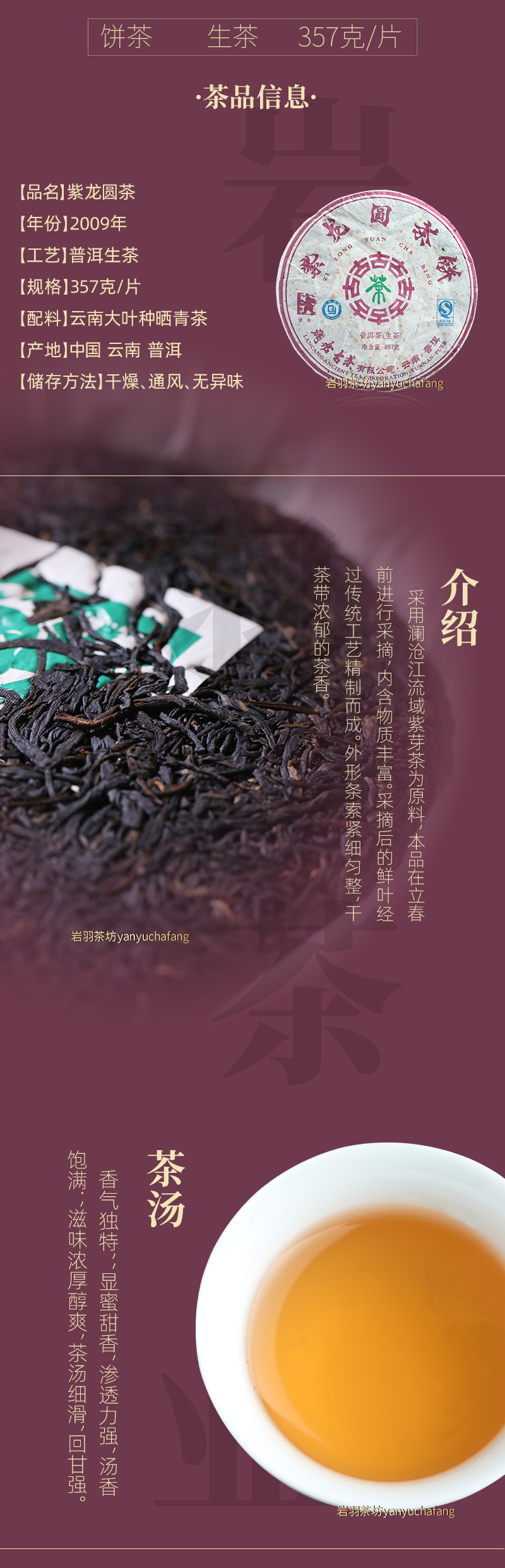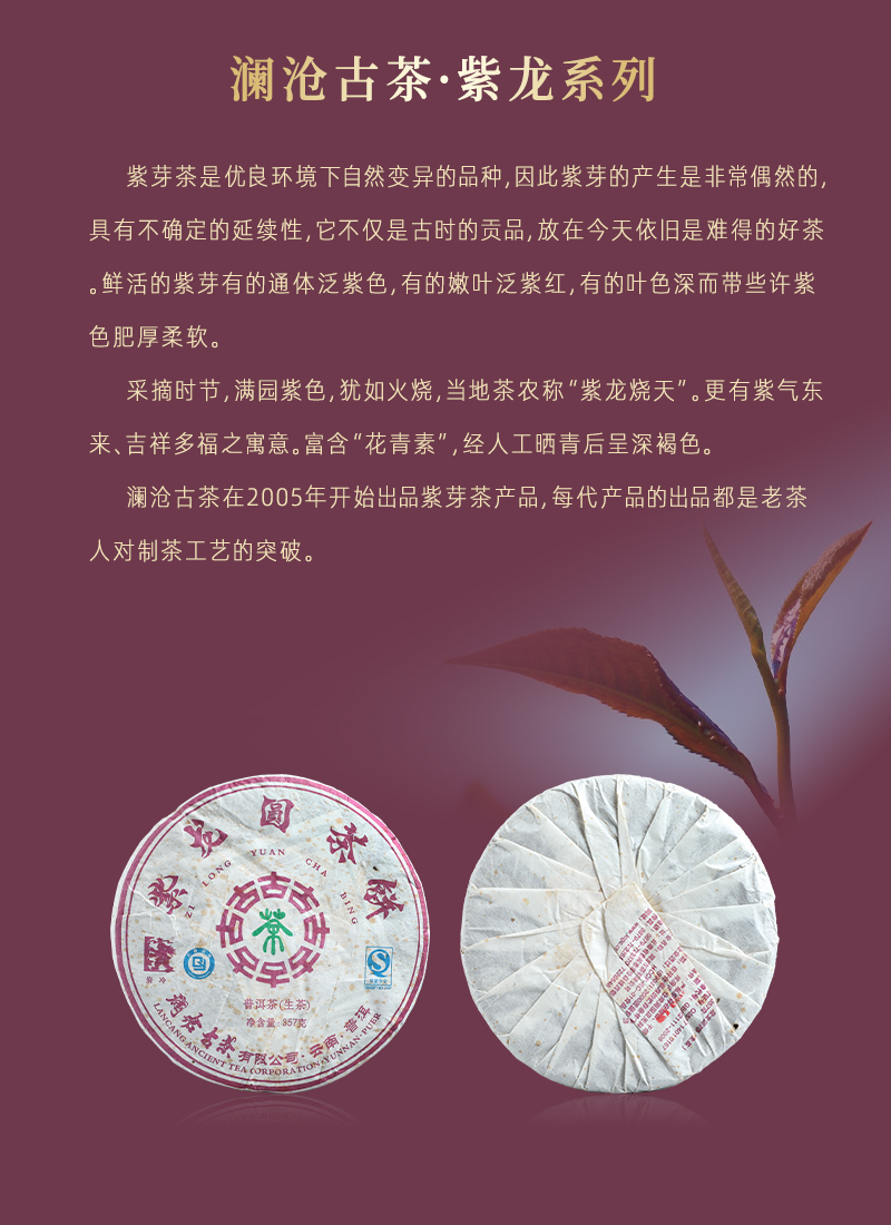 澜沧古茶2009年紫龙圆茶普洱茶生茶云南茶叶紫芽花青素干仓老茶饼357g