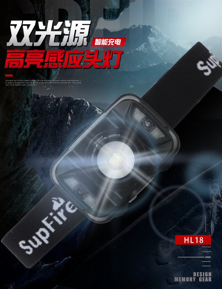 SUPERFIRE神火HL18头灯变焦强光夜钓感应led可充电户外超亮迷你钓鱼灯