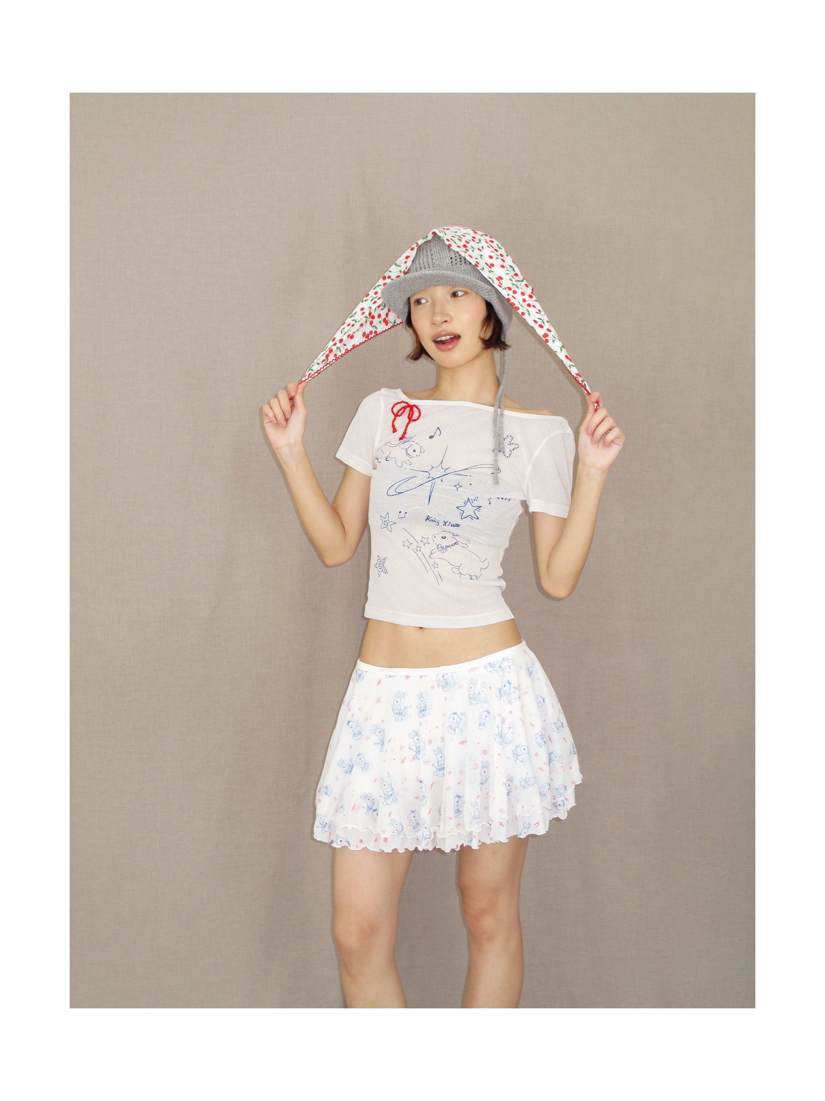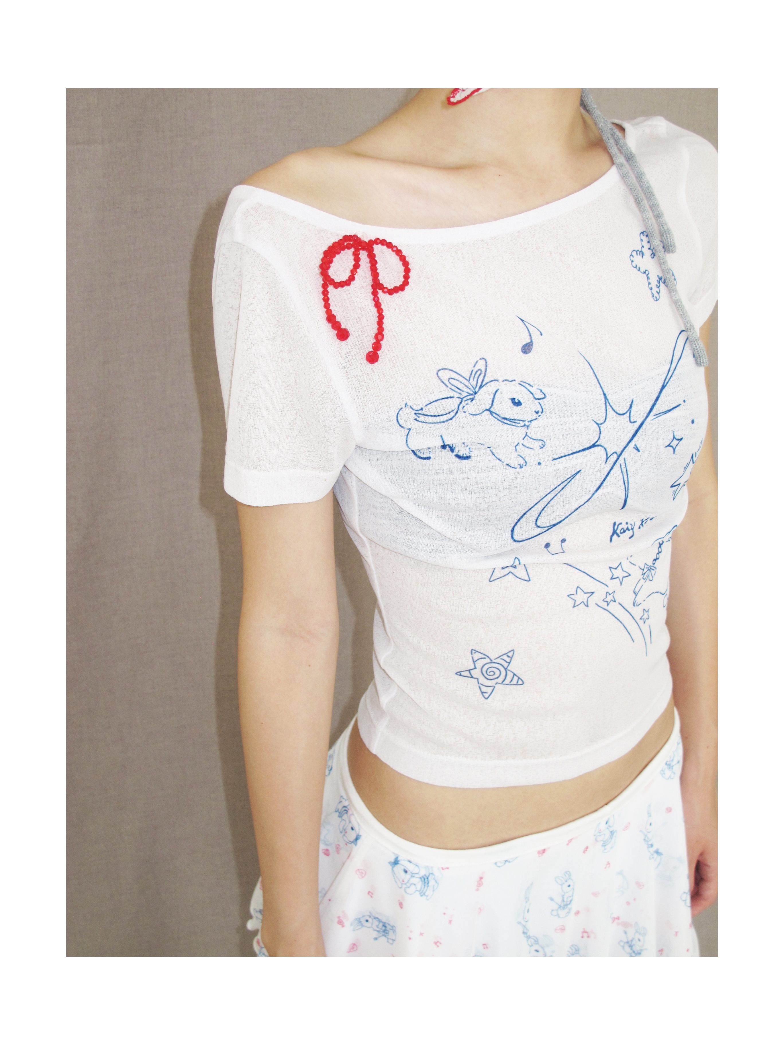 Kaiy Xiao 早秋系列 蝴蝶结串珠 星月双兔短袖