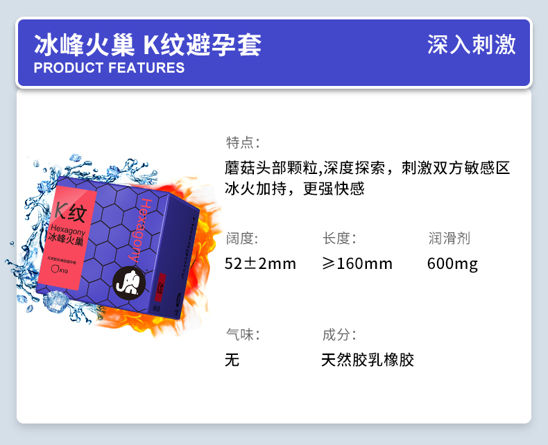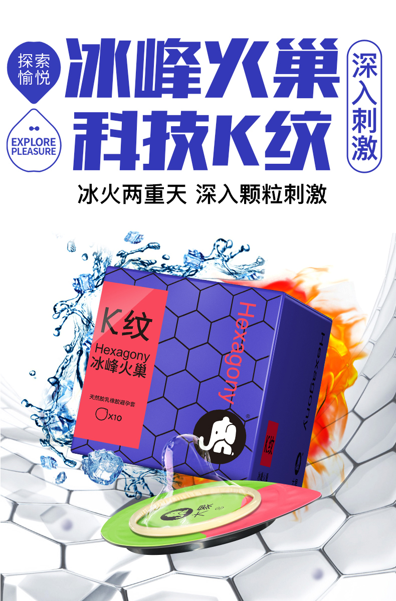 大象避孕套情趣系列K纹款纹理润滑冰火快感套情趣用品健康安心天然乳胶刺激贴合易戴润滑安全套 (3只)