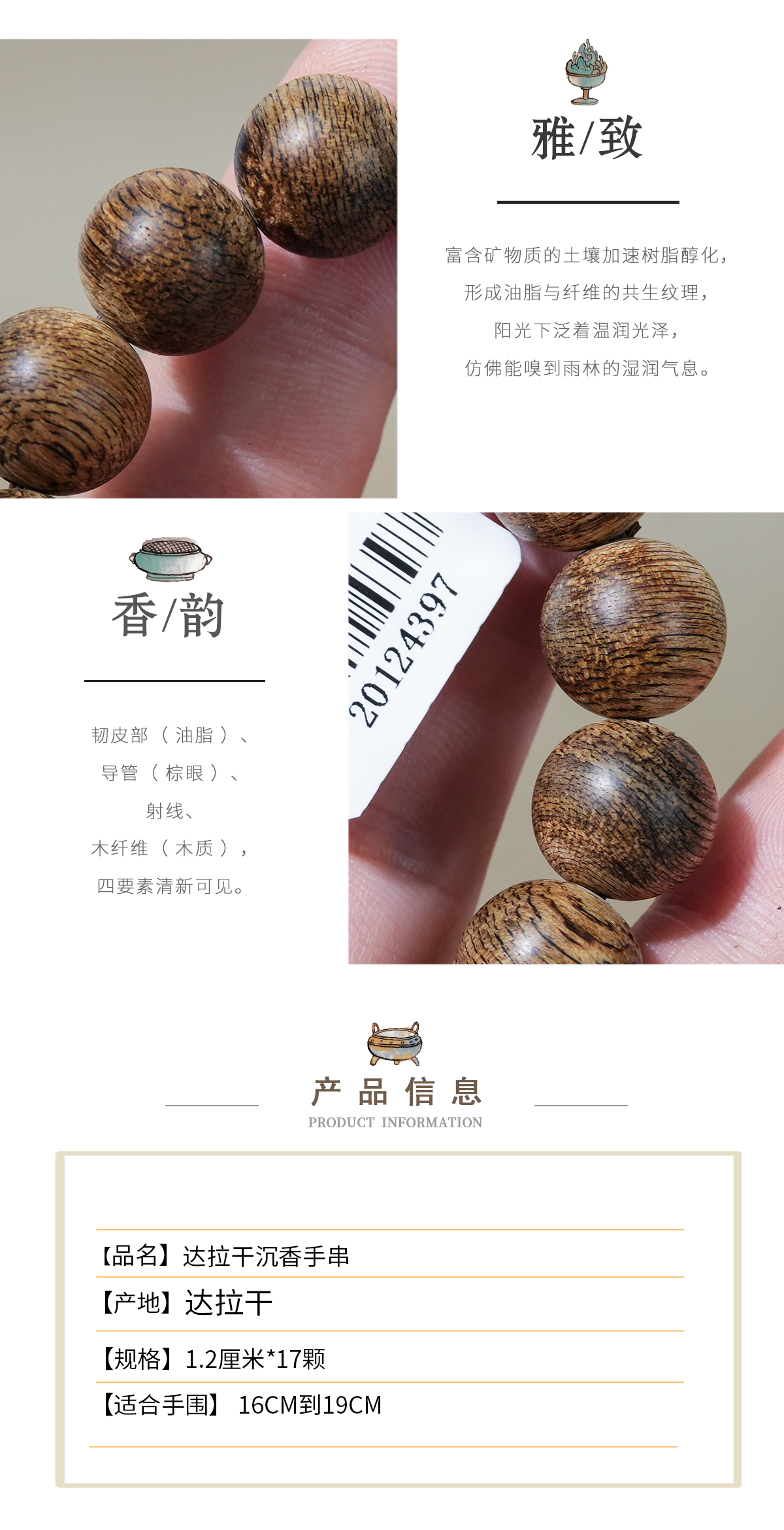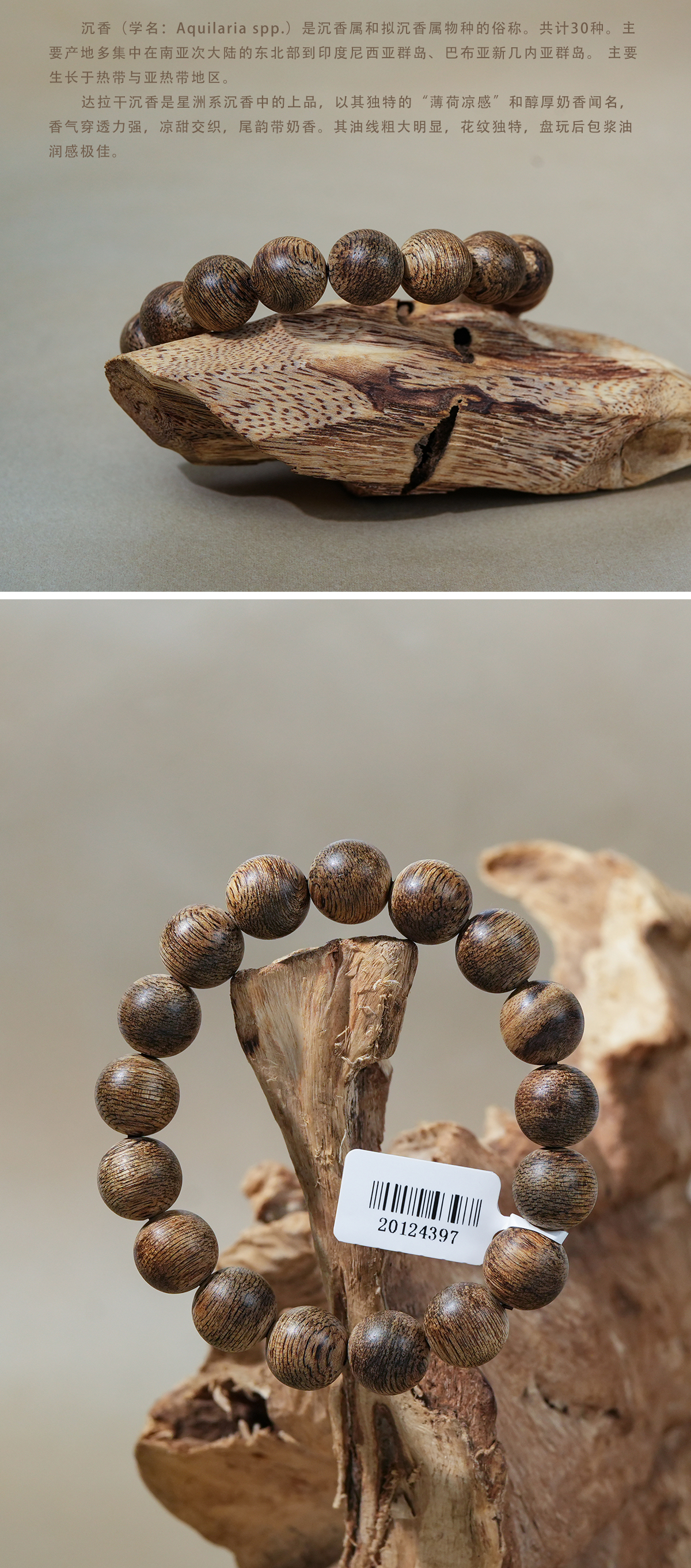 中国沉香文化博物馆 达拉干野生沉香手串1.2cm*17颗*14.8g (9分沉)