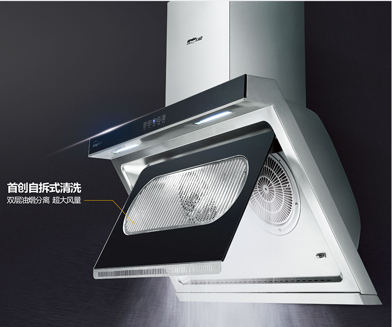 cdfh9971pfj海尔Leader平板大吸力油烟机 灵动触控 立体纵向排烟 智能自开合 触摸式 906C2