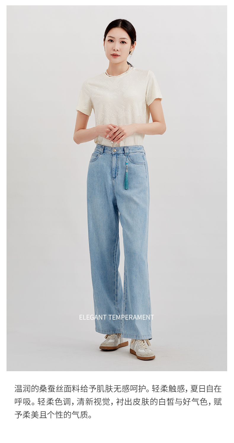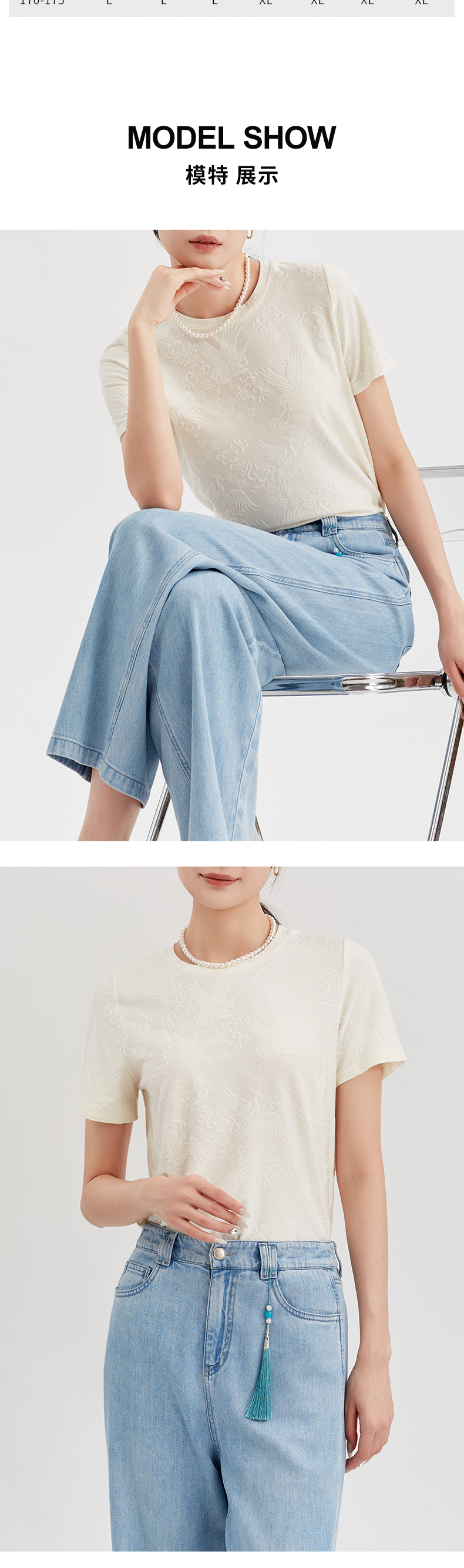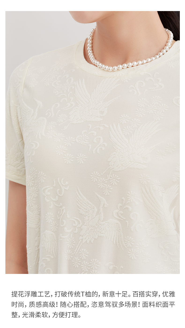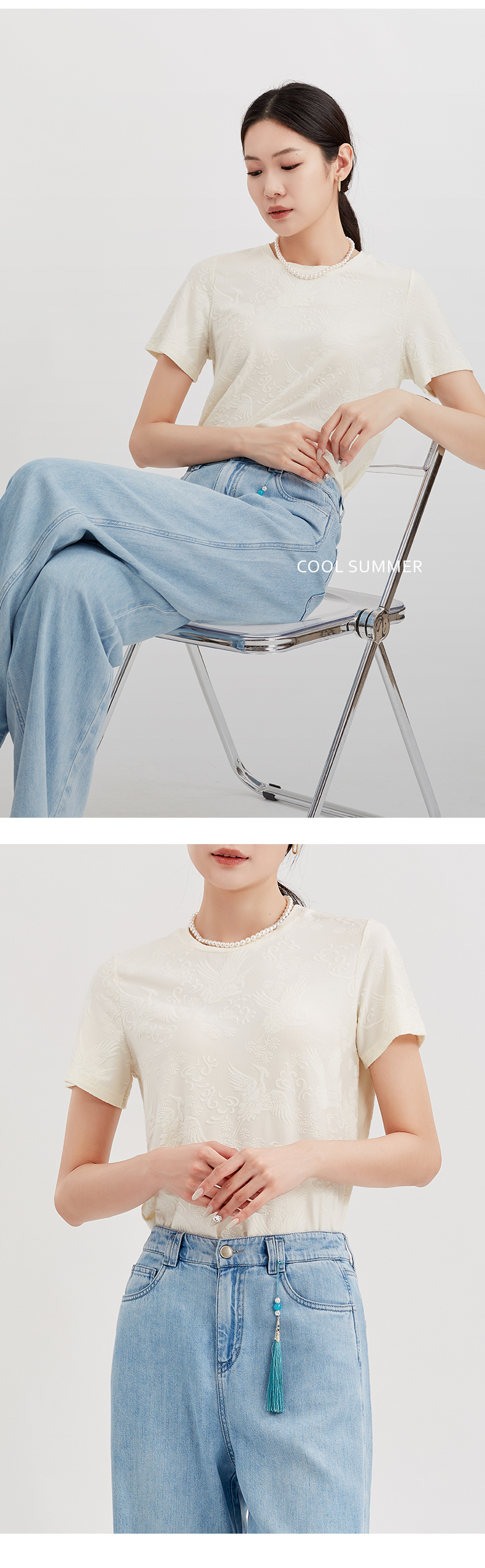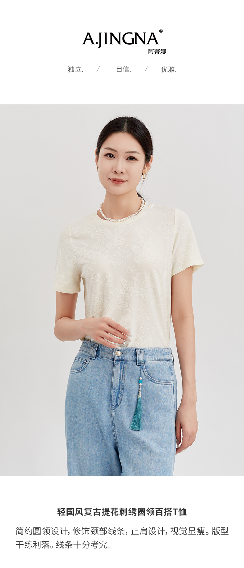 【复古中式】阿菁娜国风提花刺绣圆领百搭T恤F29X302010