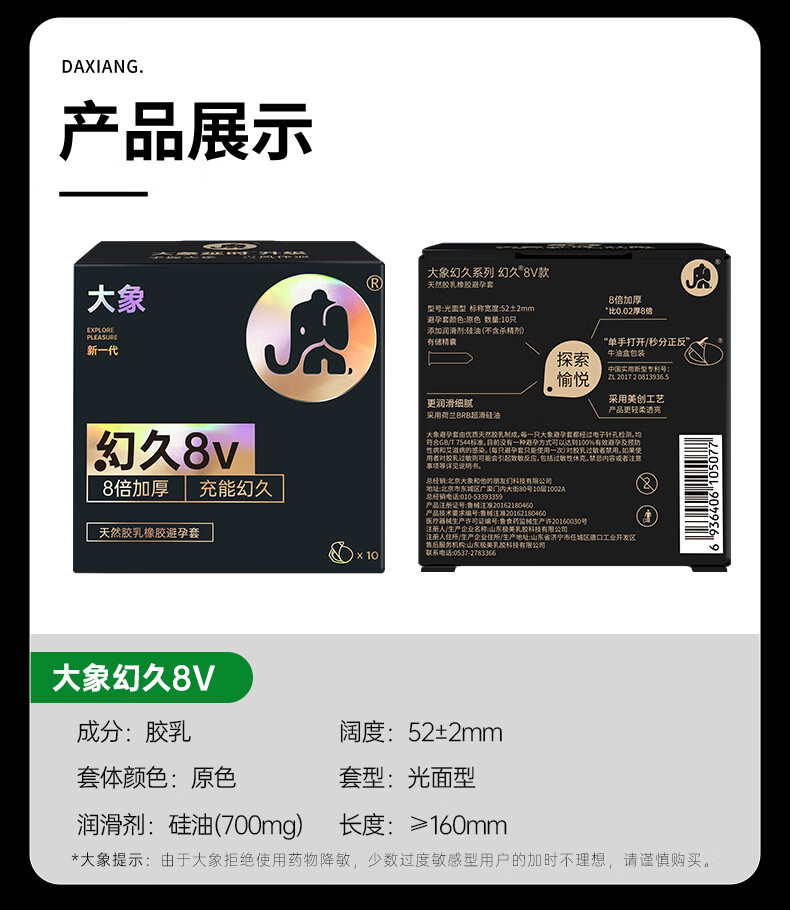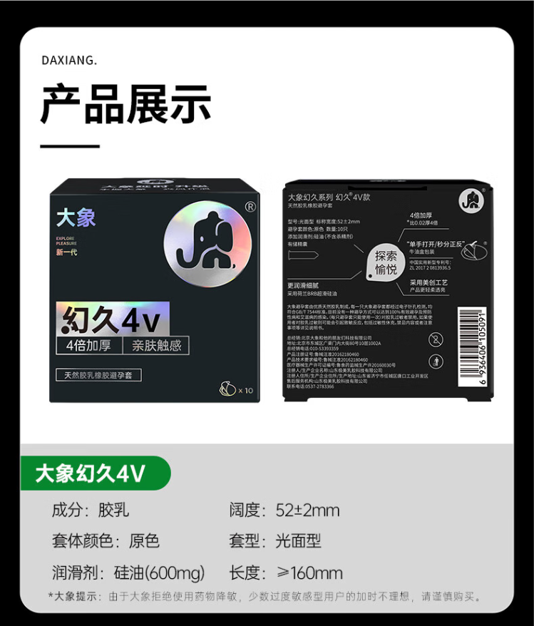 大象 延时避孕套 男用加厚持久安全套情趣用品 男士专用 成人计生用品 4倍加厚/8倍加厚幻久20只