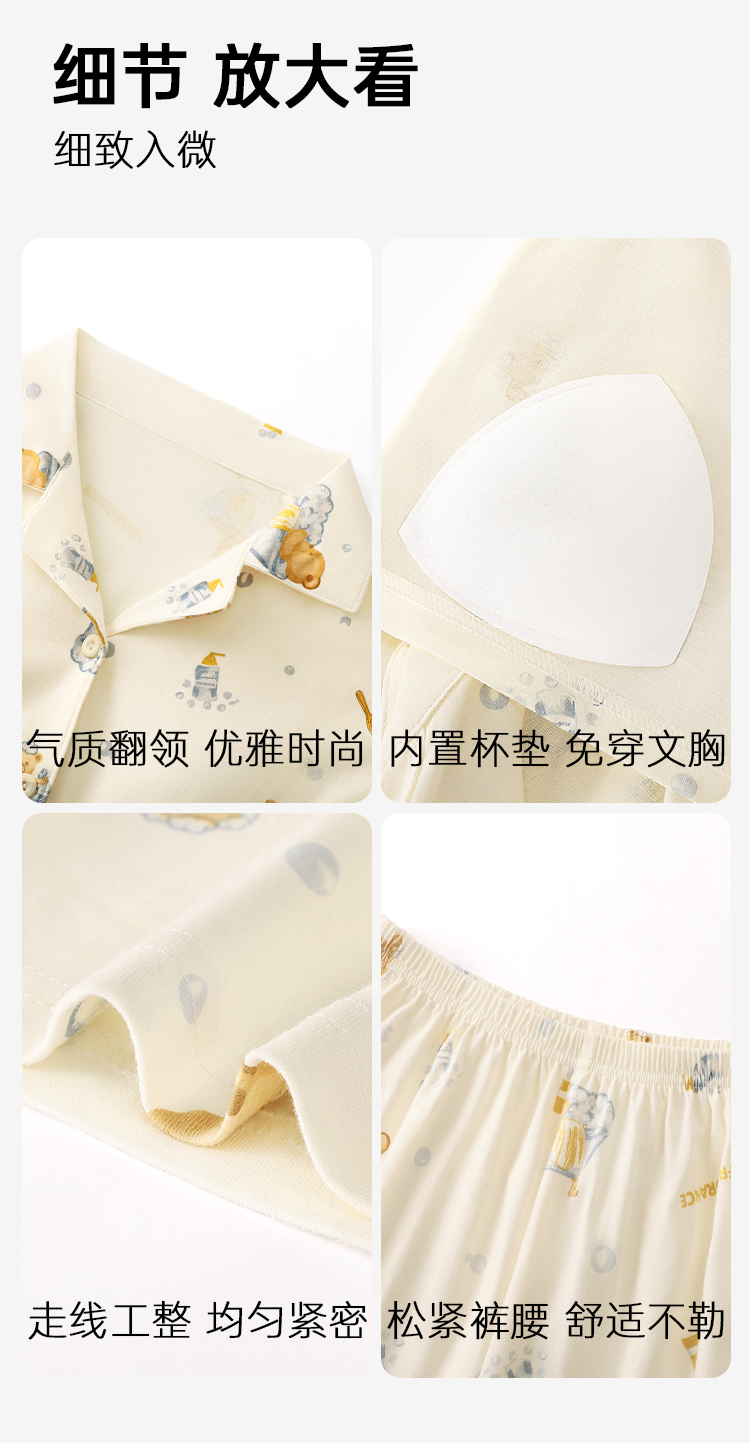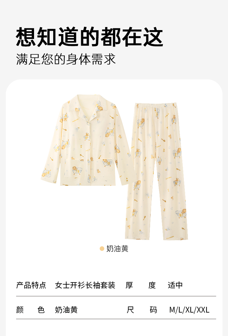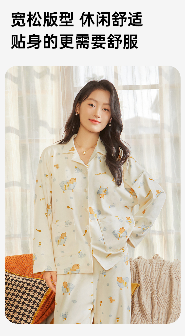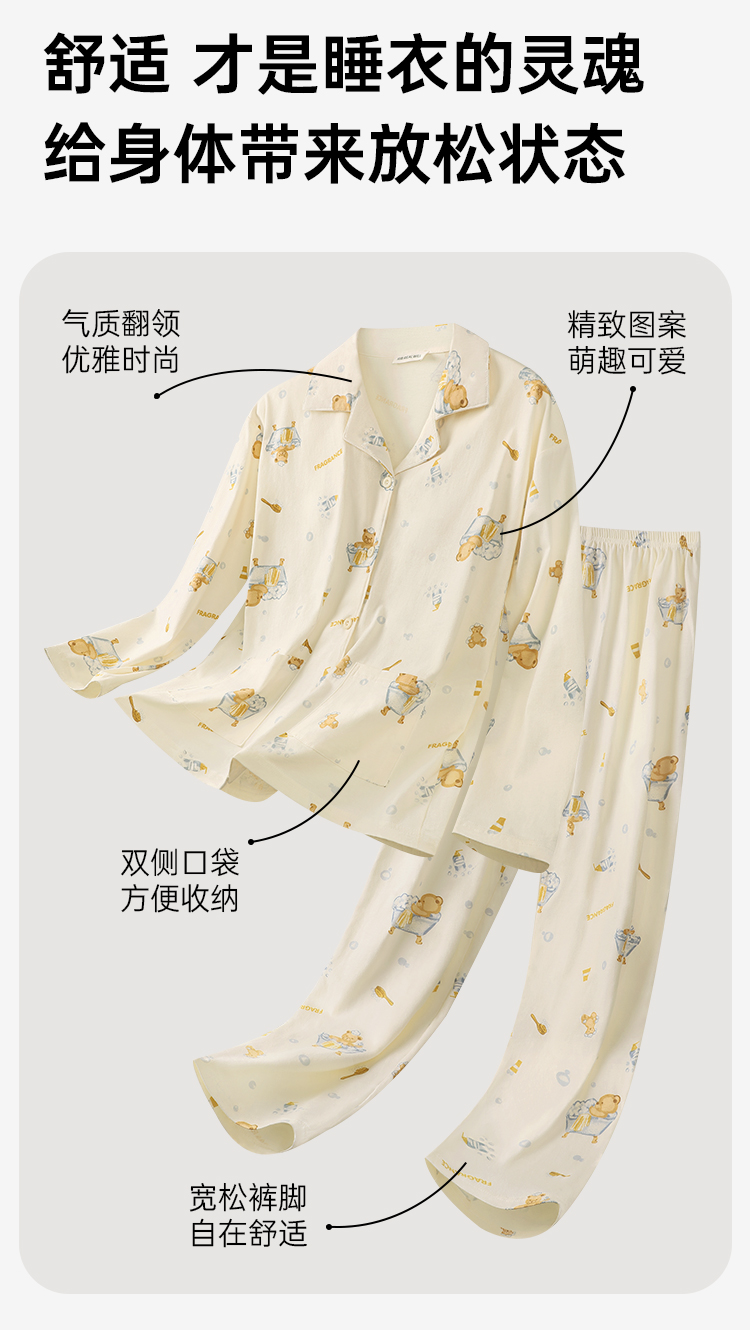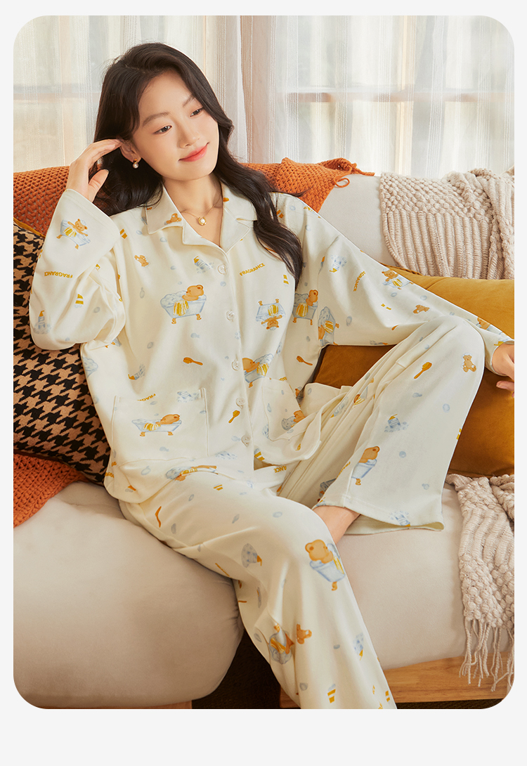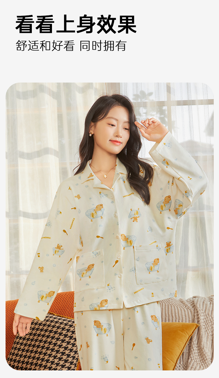 云朵泡泡 家居服(VIP) 纯棉长袖可爱卡通春秋开衫翻领长袖女士家居服睡衣女