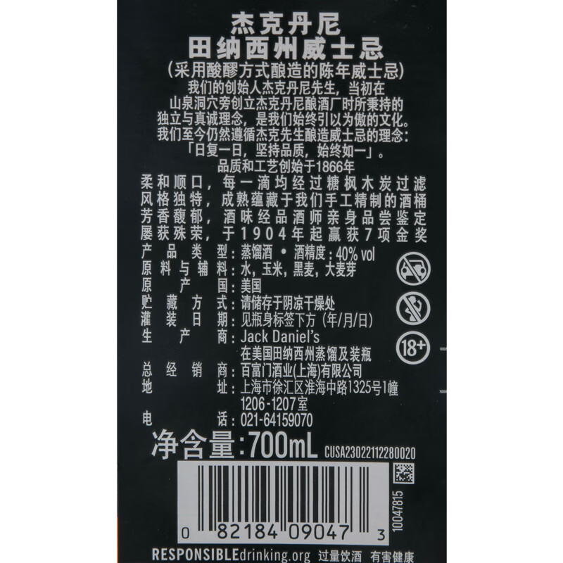 杰克丹尼田纳西州威士忌_40%vol_700ml