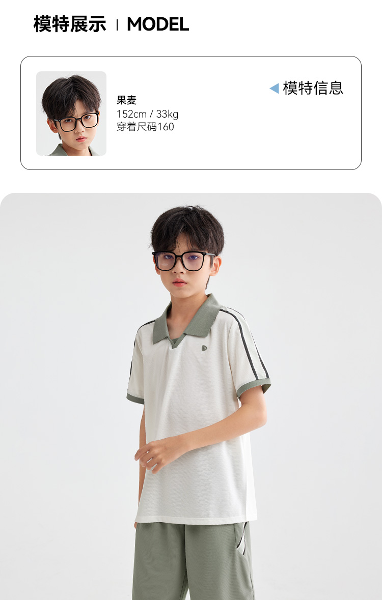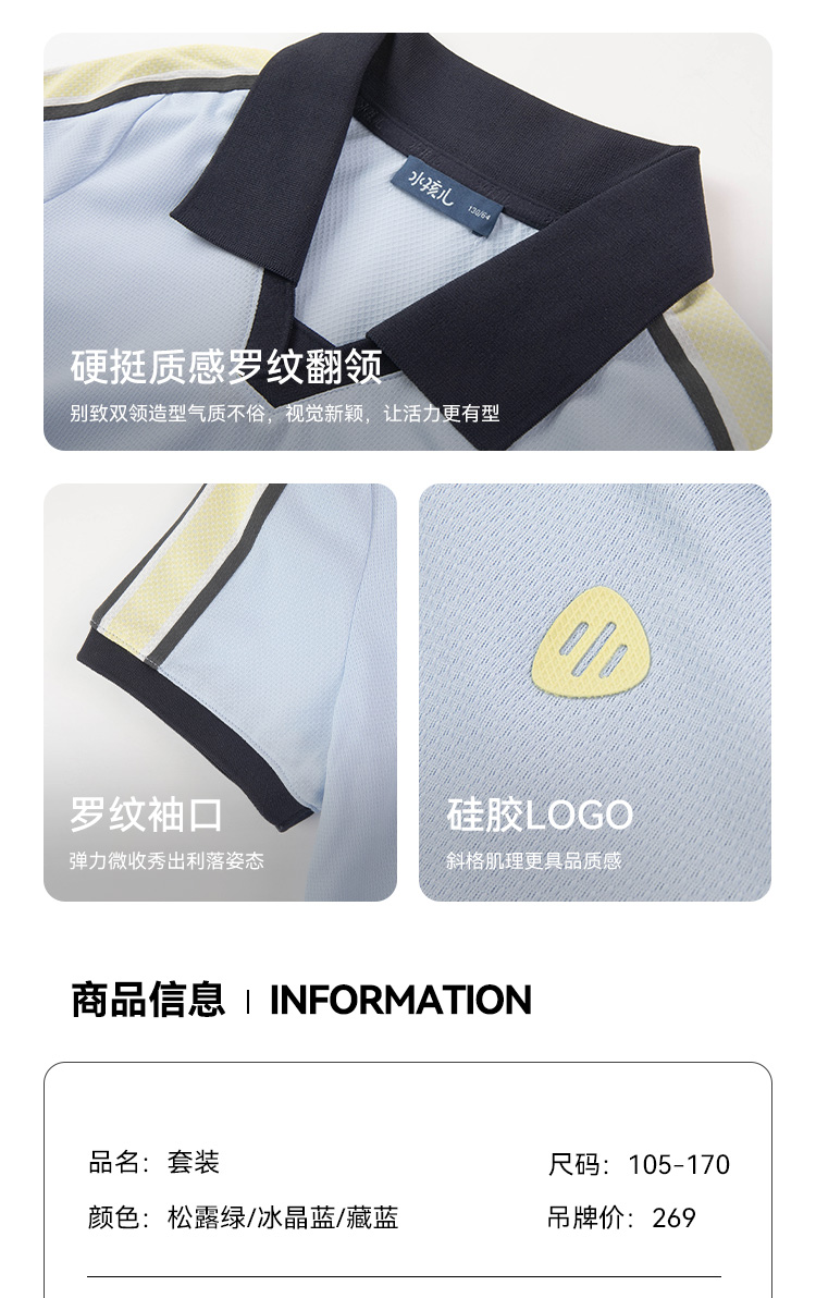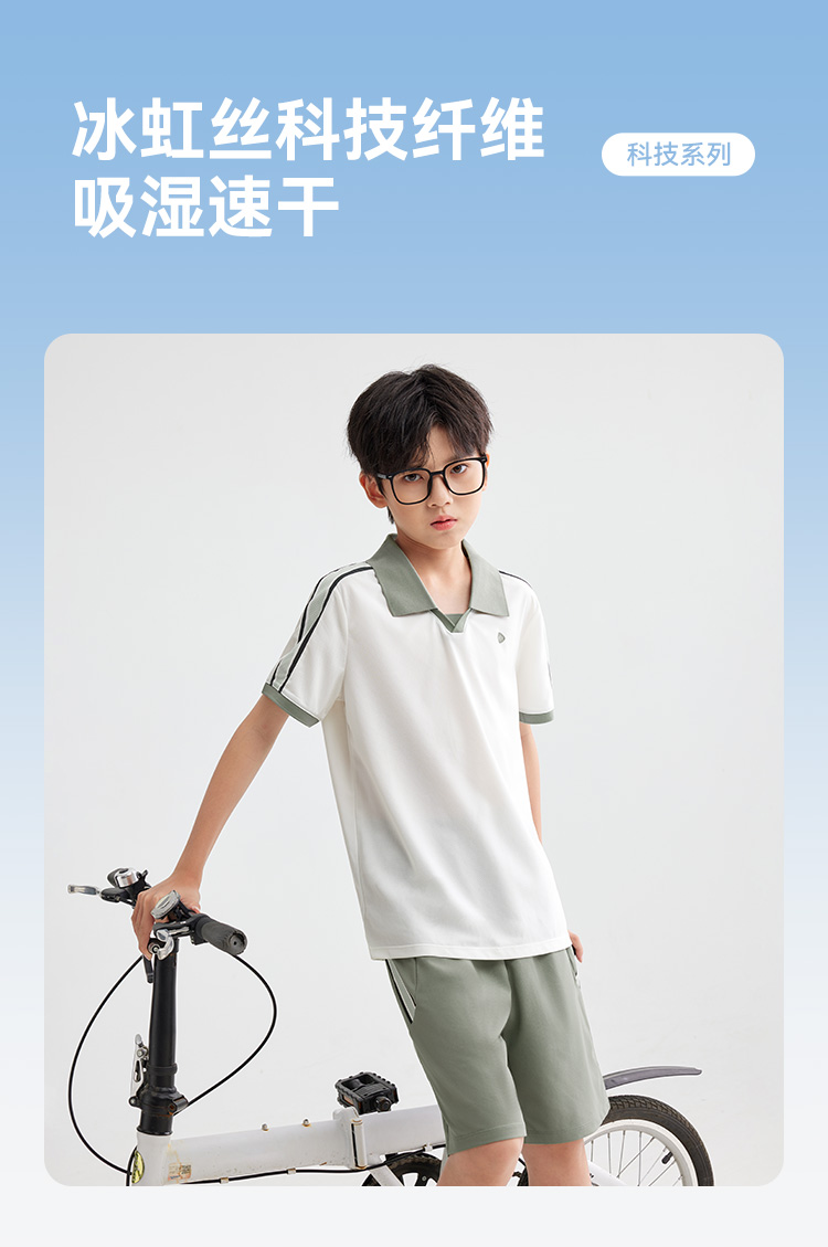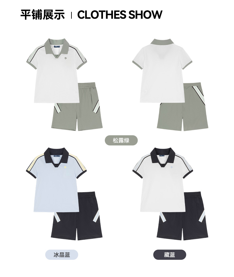 水孩儿童装夏季新款男童速干套装时尚POLO领短袖简约纯色运动短裤