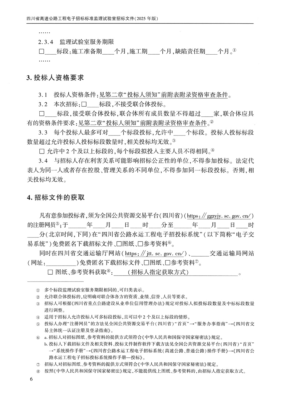 四川省高速公路工程电子招标标准监理试验室招标文件(2025年版)