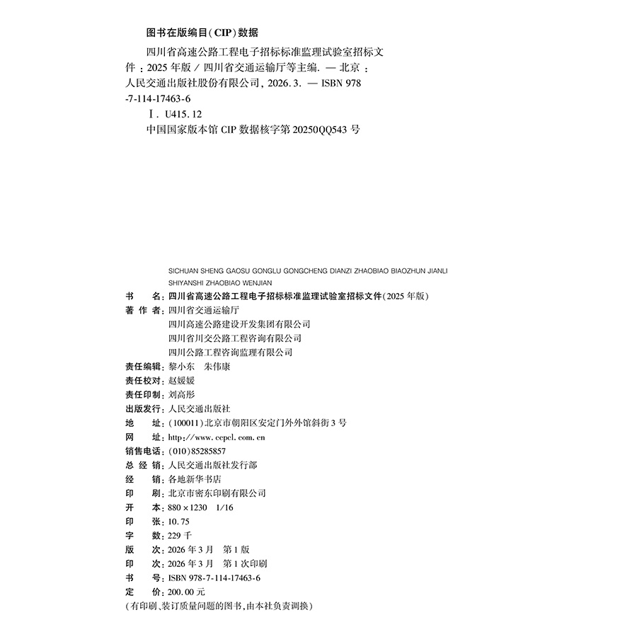 书名:四川省高速公路工程电子招标标准监理试验室招标文件(2025年版)