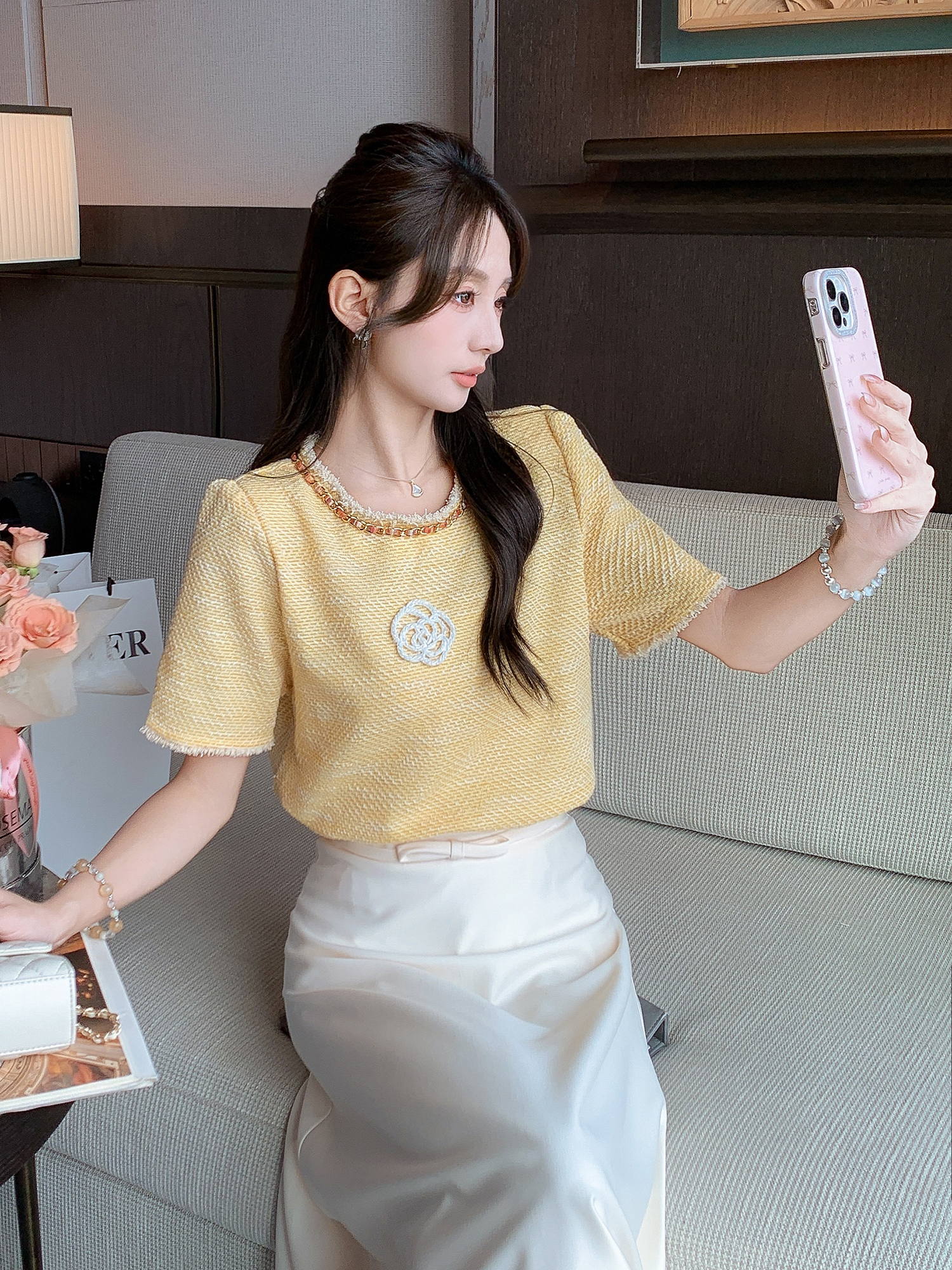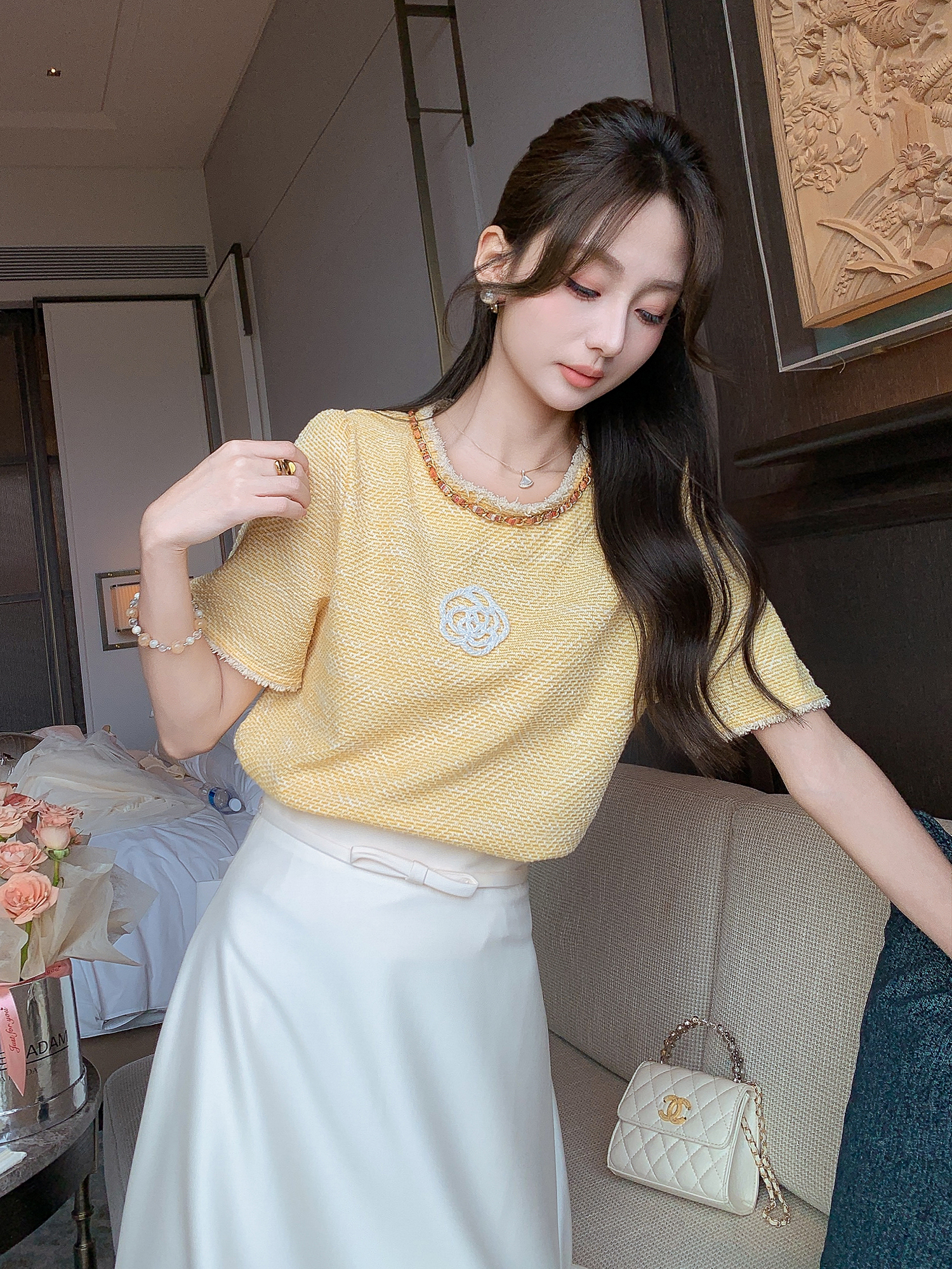 张心子【小香山茶花】减龄高级感山茶花编织上衣 U2507014