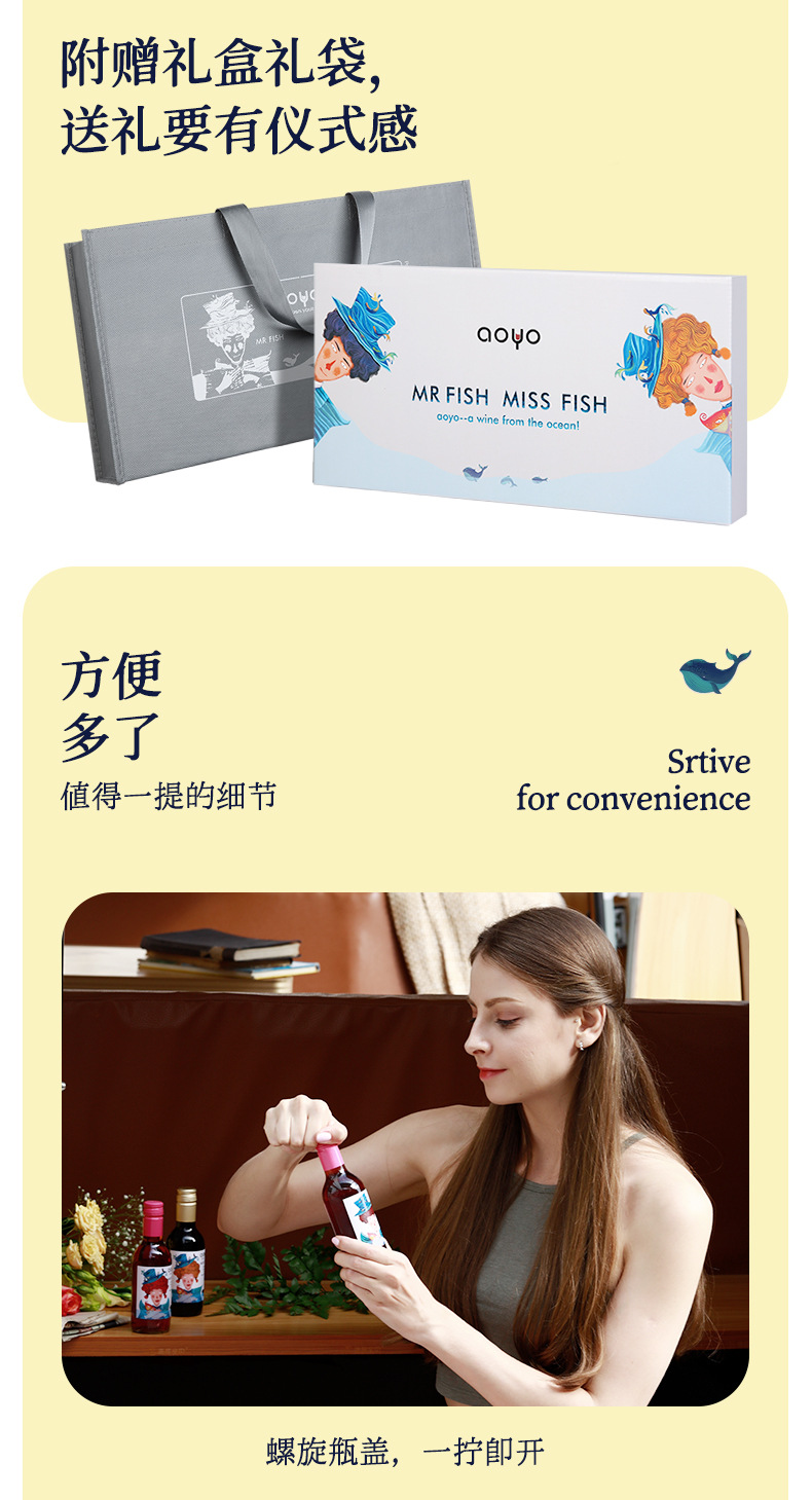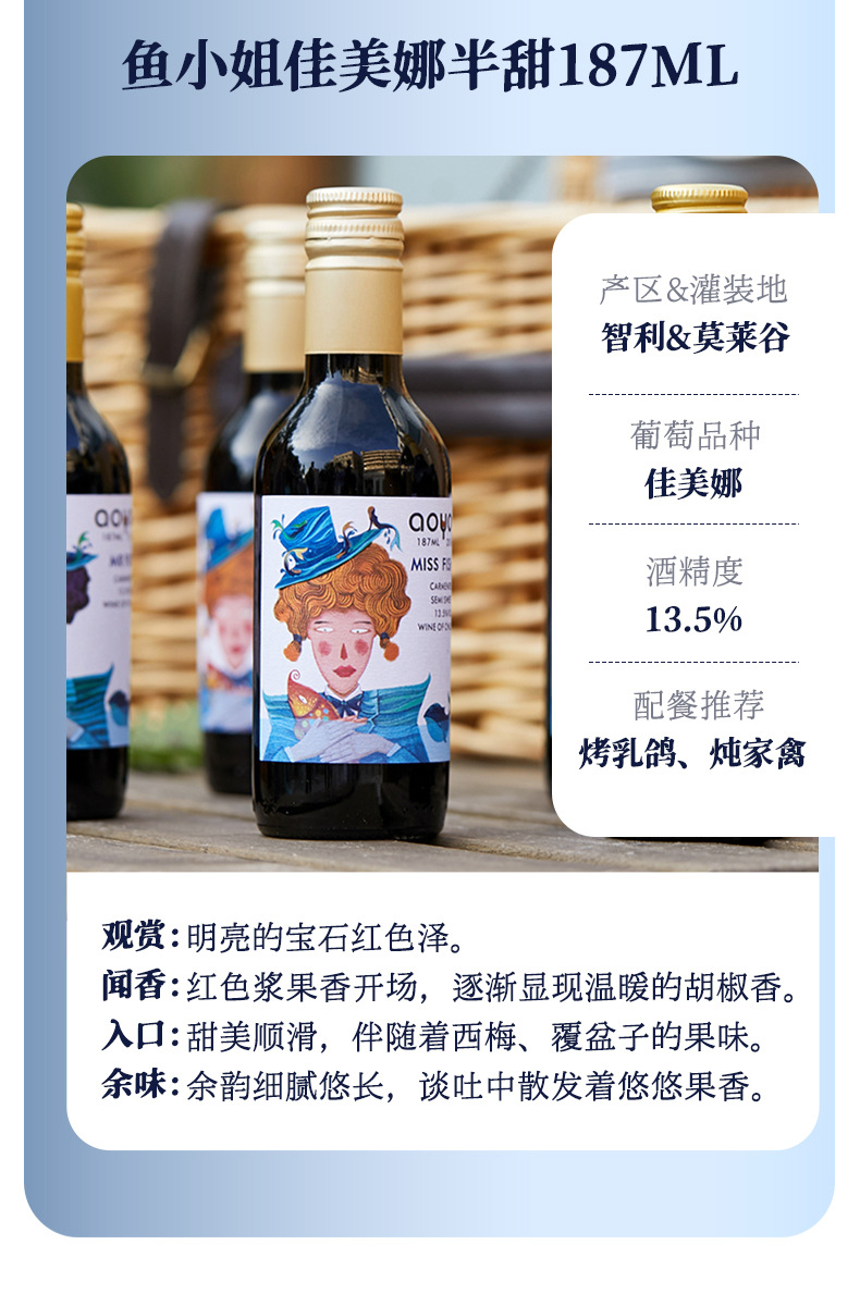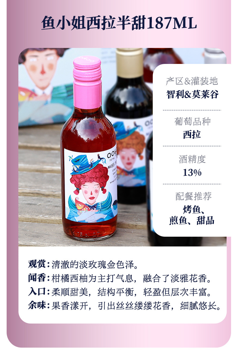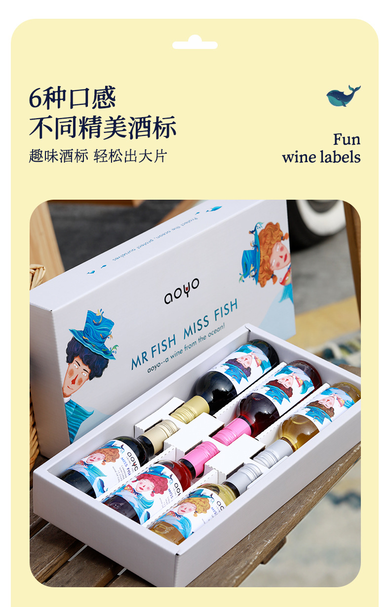 【6瓶礼盒装!高颜值品质小酒】傲鱼小瓶红酒智利原装原瓶进口半甜葡萄酒水果酒伴手礼盒装li
