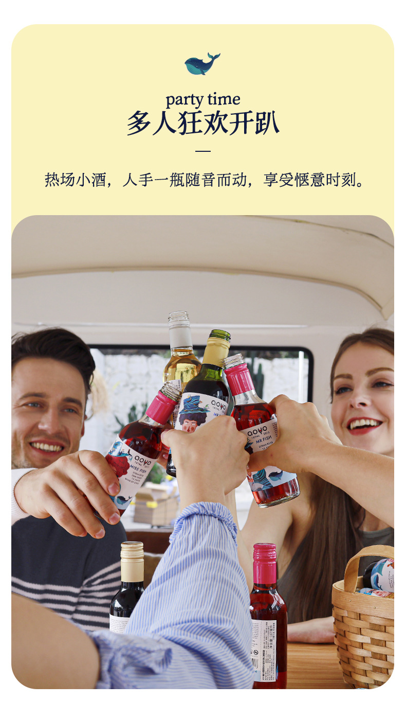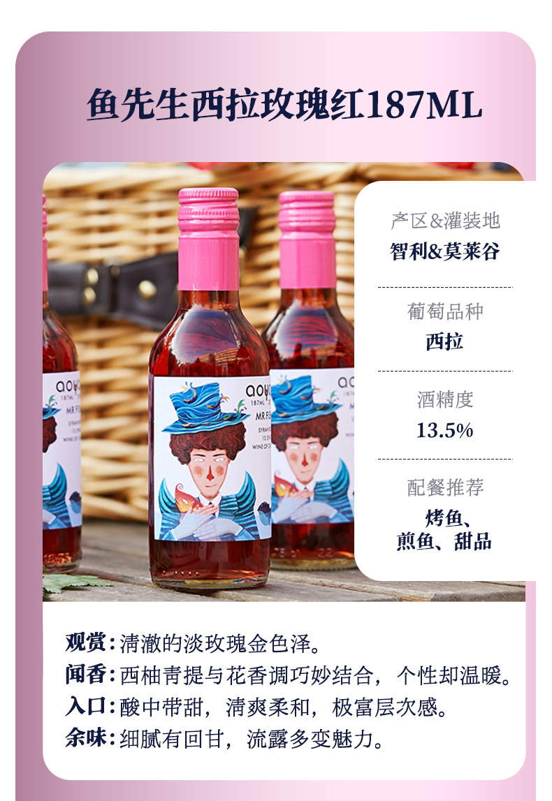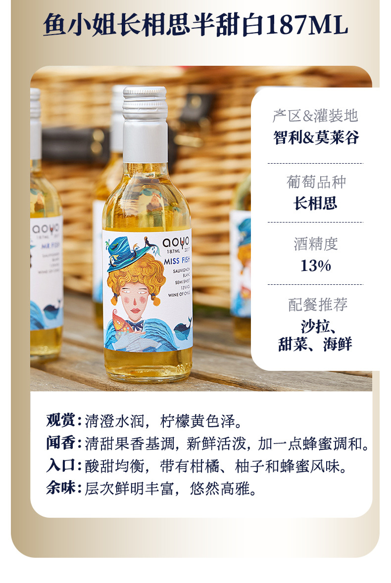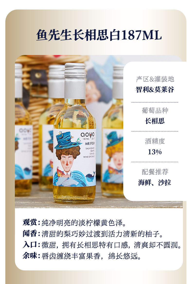 【6瓶礼盒装!高颜值品质小酒】傲鱼小瓶红酒智利原装原瓶进口半甜葡萄酒水果酒伴手礼盒装li