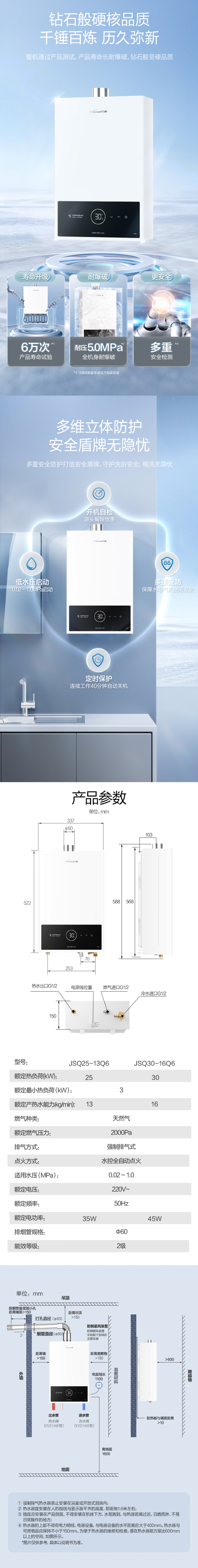 万和(510887)16Q6强排式燃气热水器智能氧护低压启动恒温燃气热水器