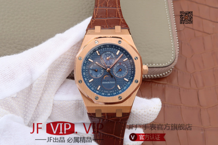 JF爱彼皇家橡树26574。功能:日期显示、星期显示、月份显示、年历显示、万年历、月相进口机克隆原装5134自动机械机芯,41毫米,男士手表腕表