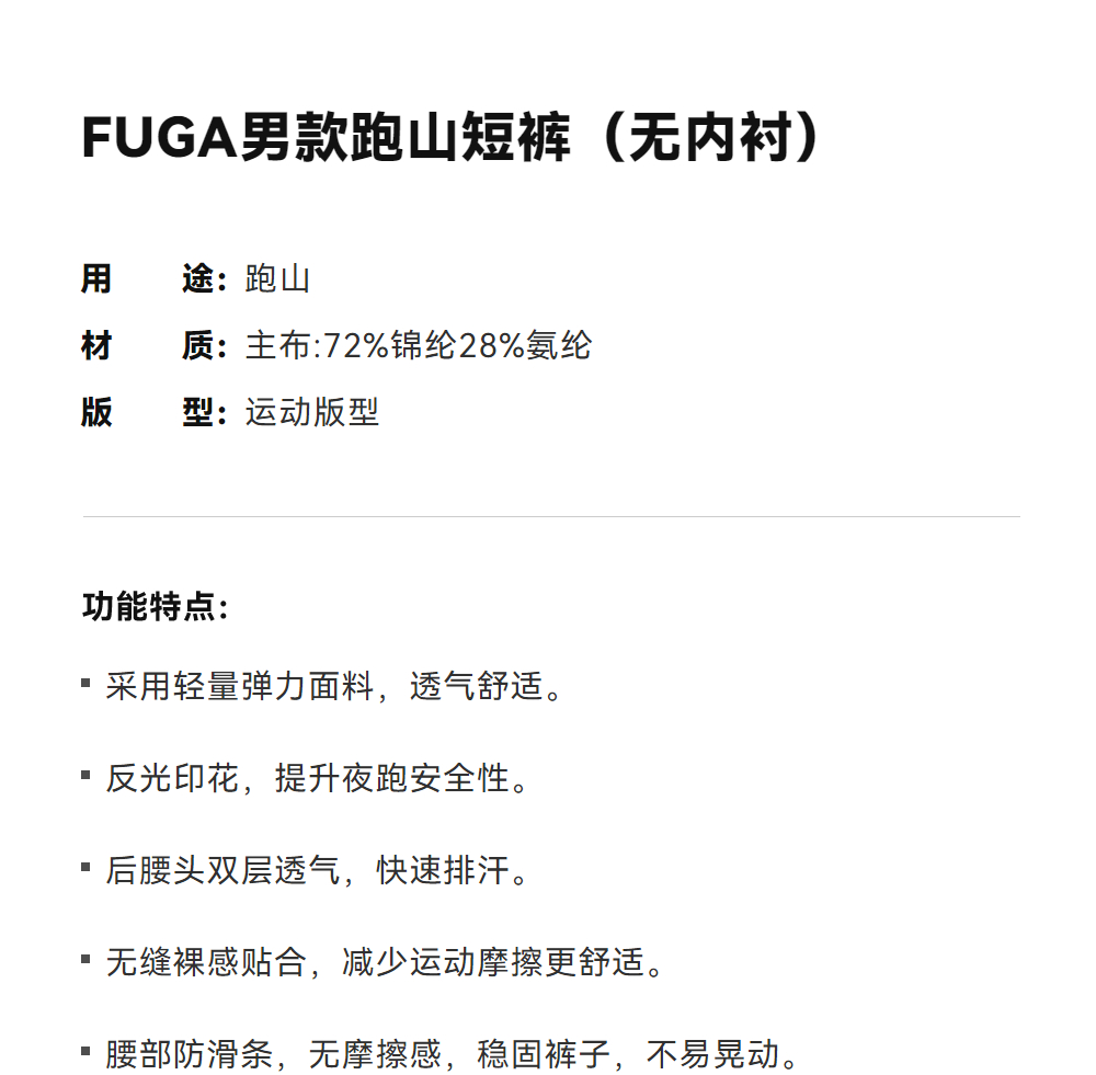 KAILAS凯乐石 FUGA男款跑山短裤(无内衬)KG2525301