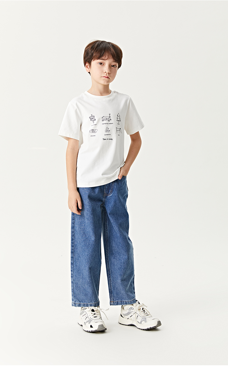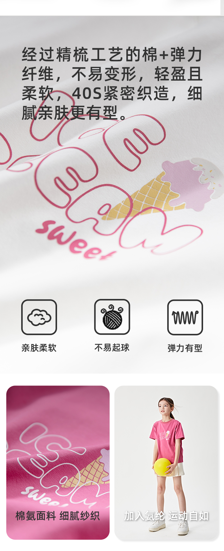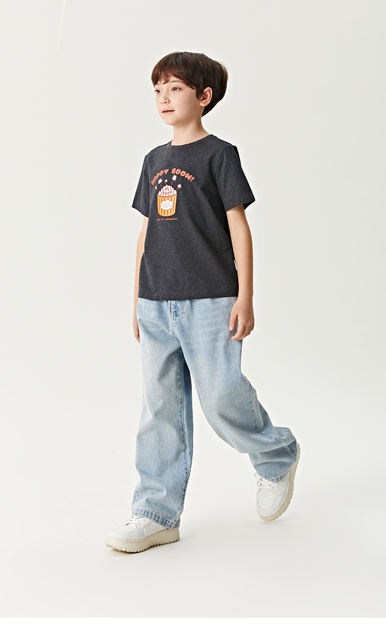 棉叔叔男女大童短袖T恤353901007 | 细腻柔软、轻盈有弹性、不易变形、童趣印花设计、休闲百搭