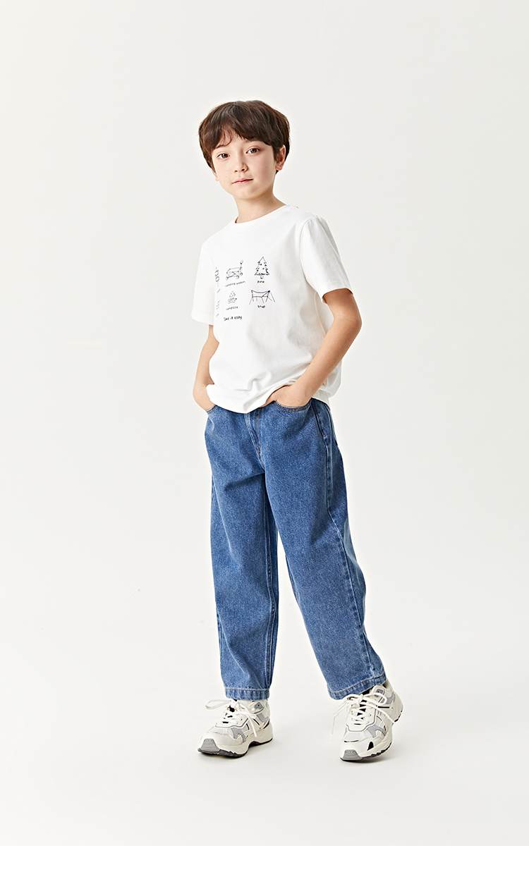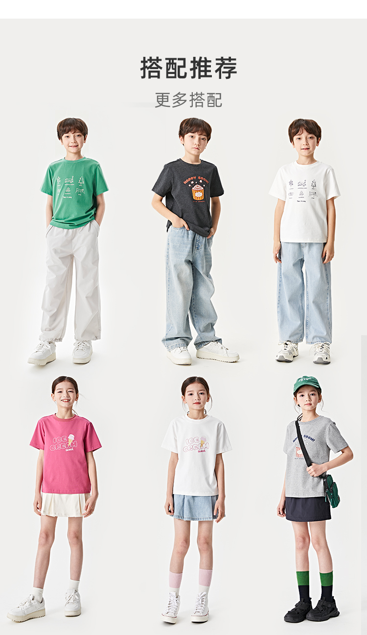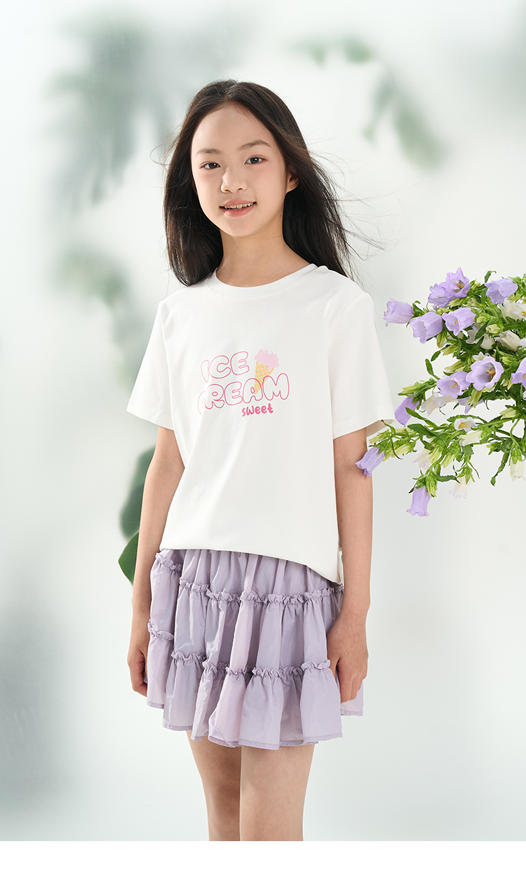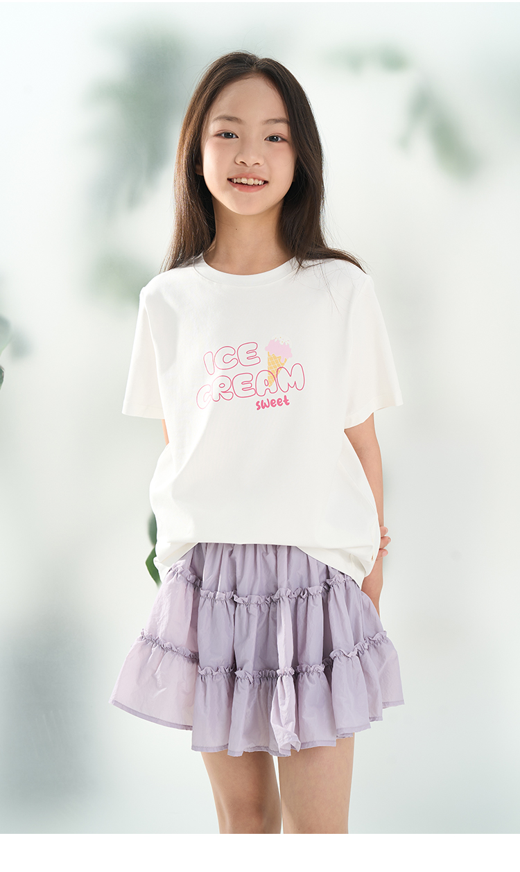 棉叔叔男女大童短袖T恤353901007 | 细腻柔软、轻盈有弹性、不易变形、童趣印花设计、休闲百搭